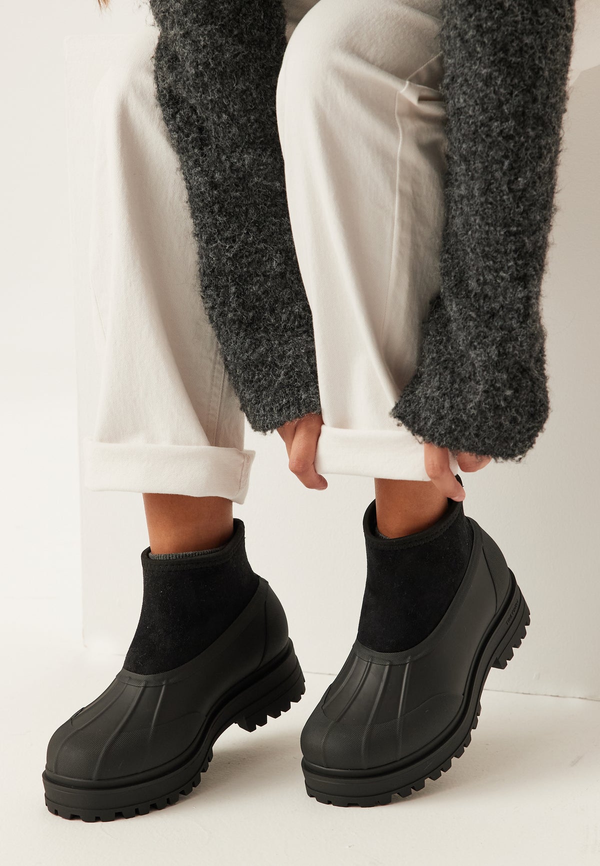 Upper: 100% Rubber Lining: 50% Polyester, 50% Neoprene Insole: 100% Polyester Midsole: 100% Rubber Outer sole: 100% Rubber