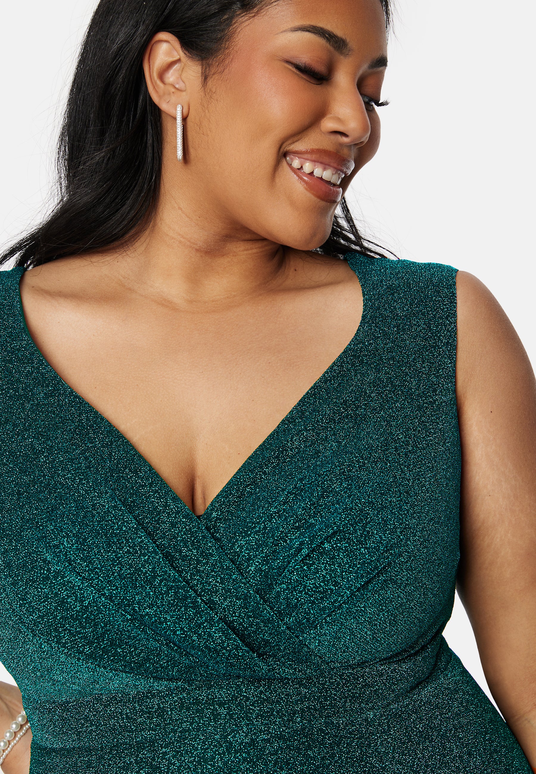 Fine, glittery gown by Goddiva Curve. It is perfect for festive occasions.