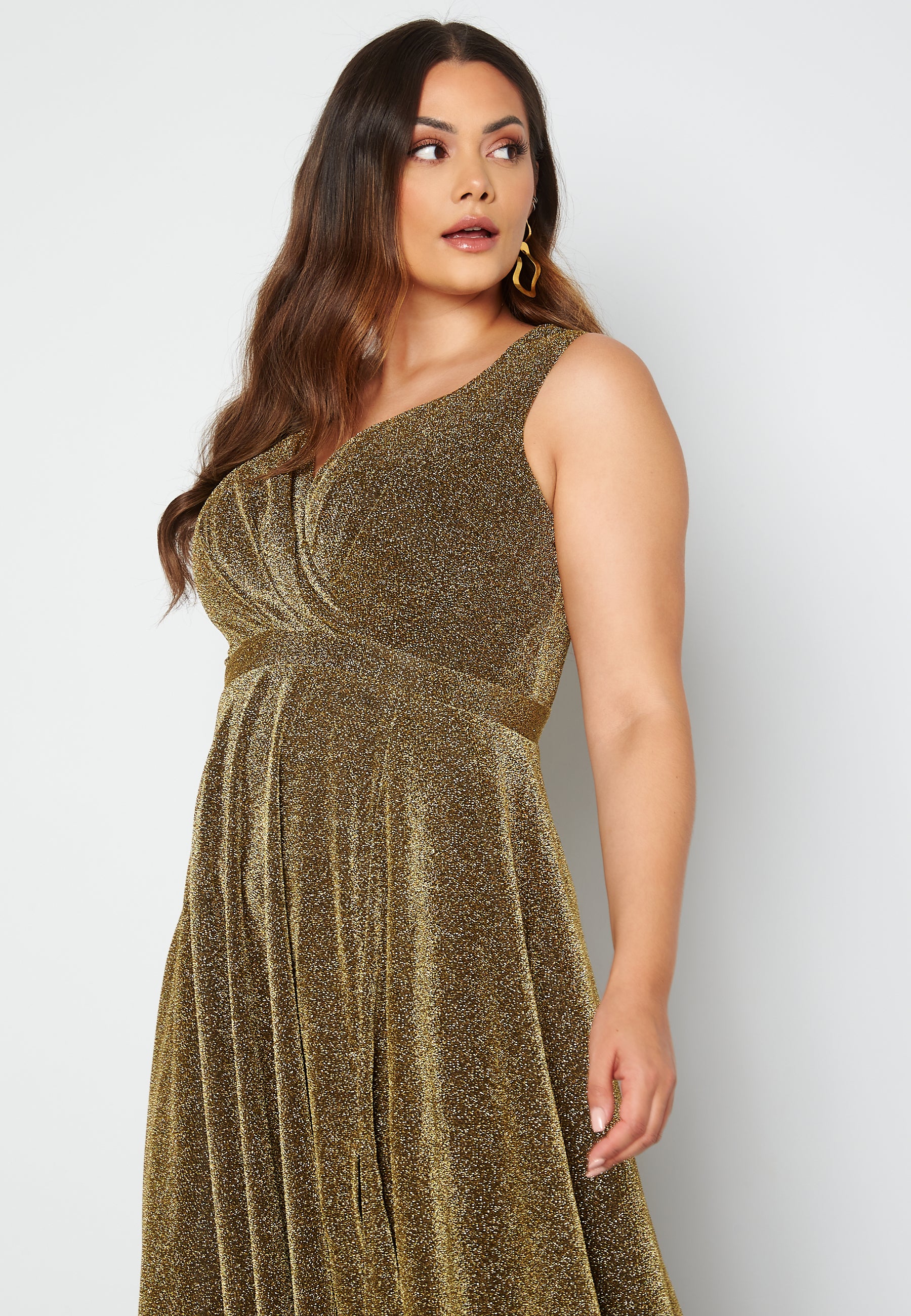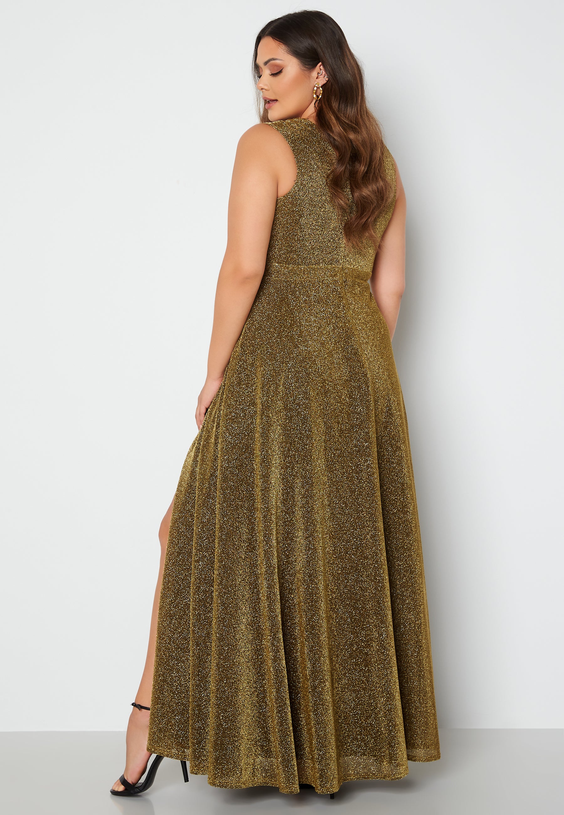 Fine, glittery gown by Goddiva Curve. It is perfect for festive occasions.