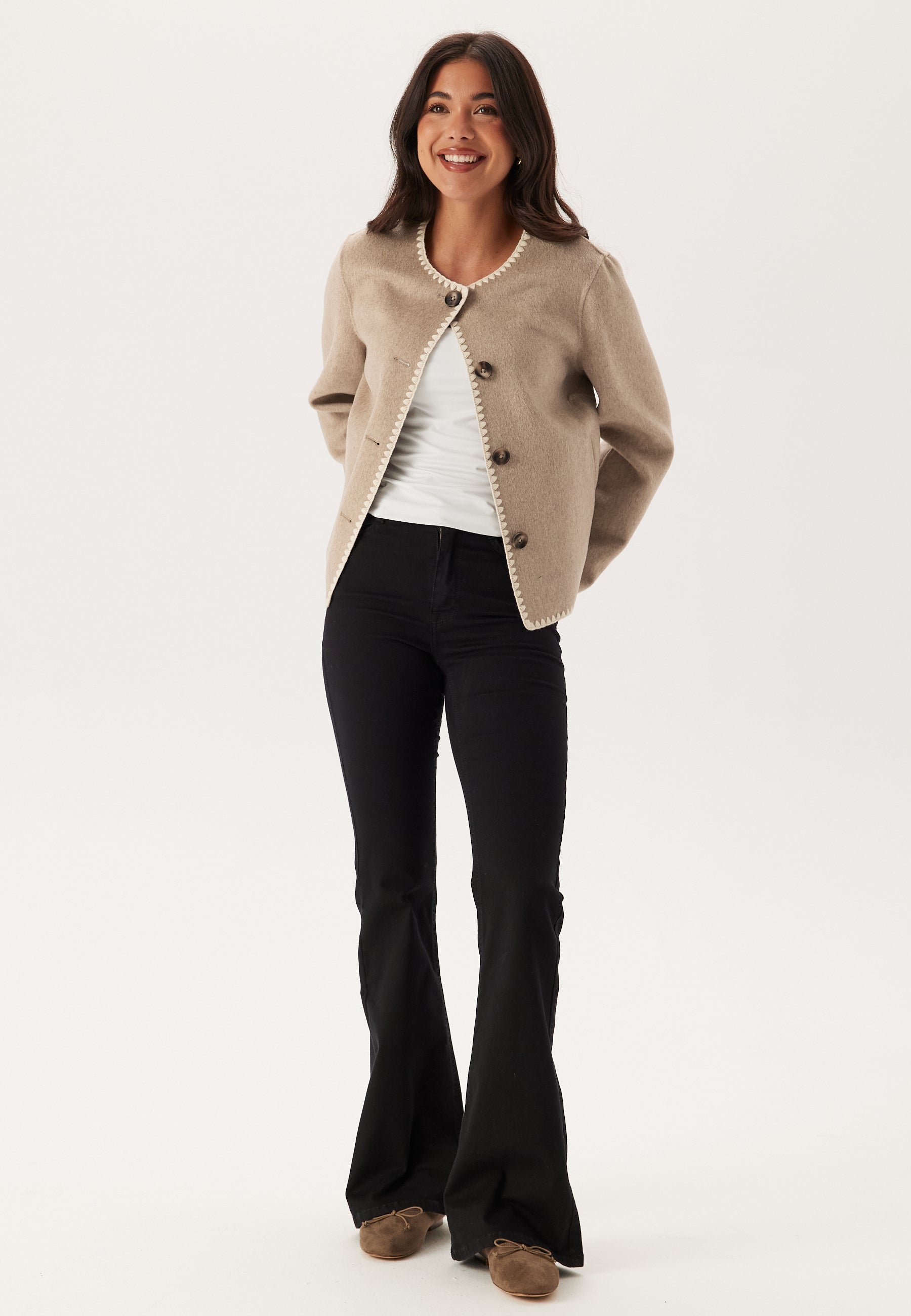 - Length from front shoulder: 58 cm in size 36.
