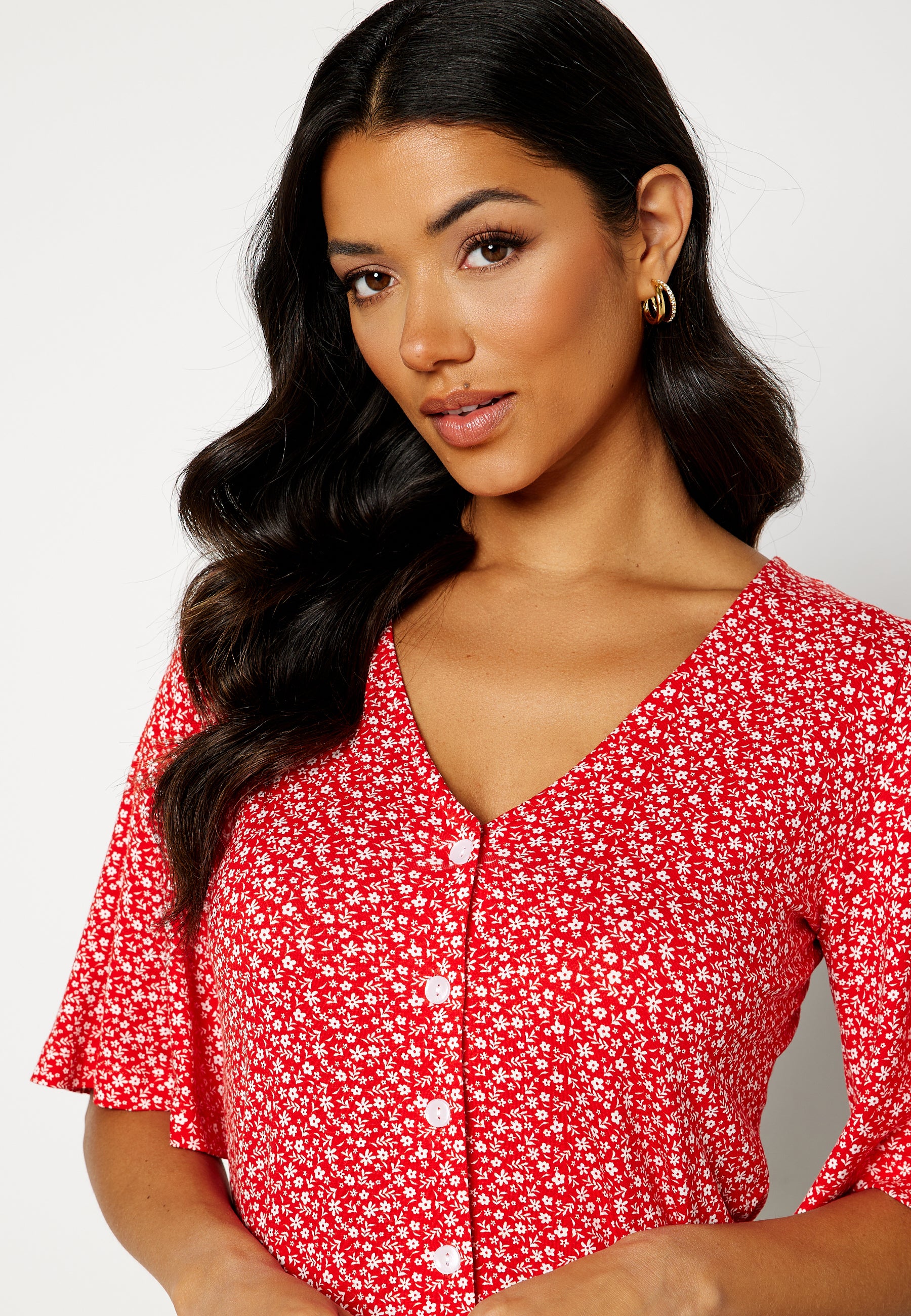 Malini button frill top
