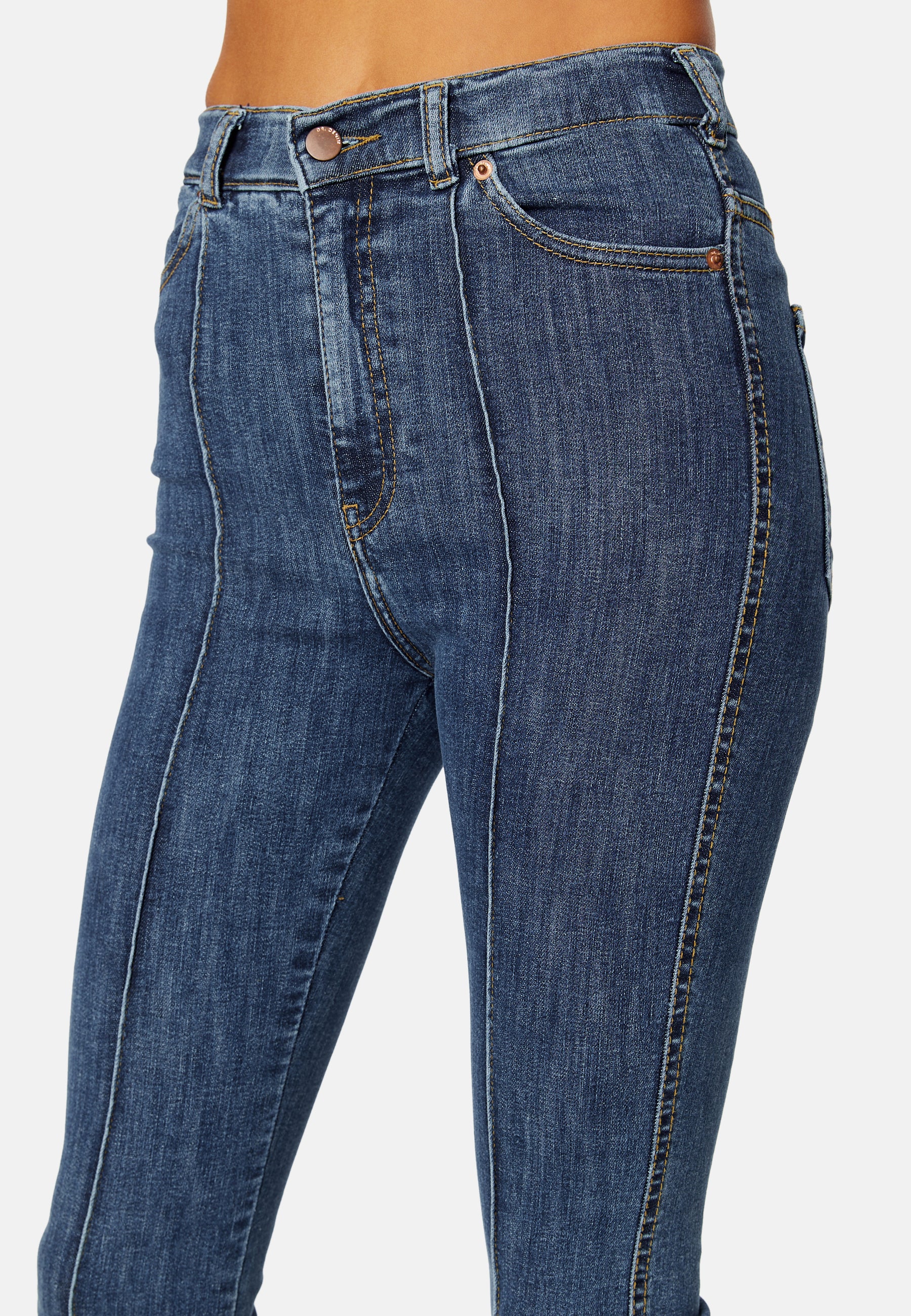 - Zip fly with button.
