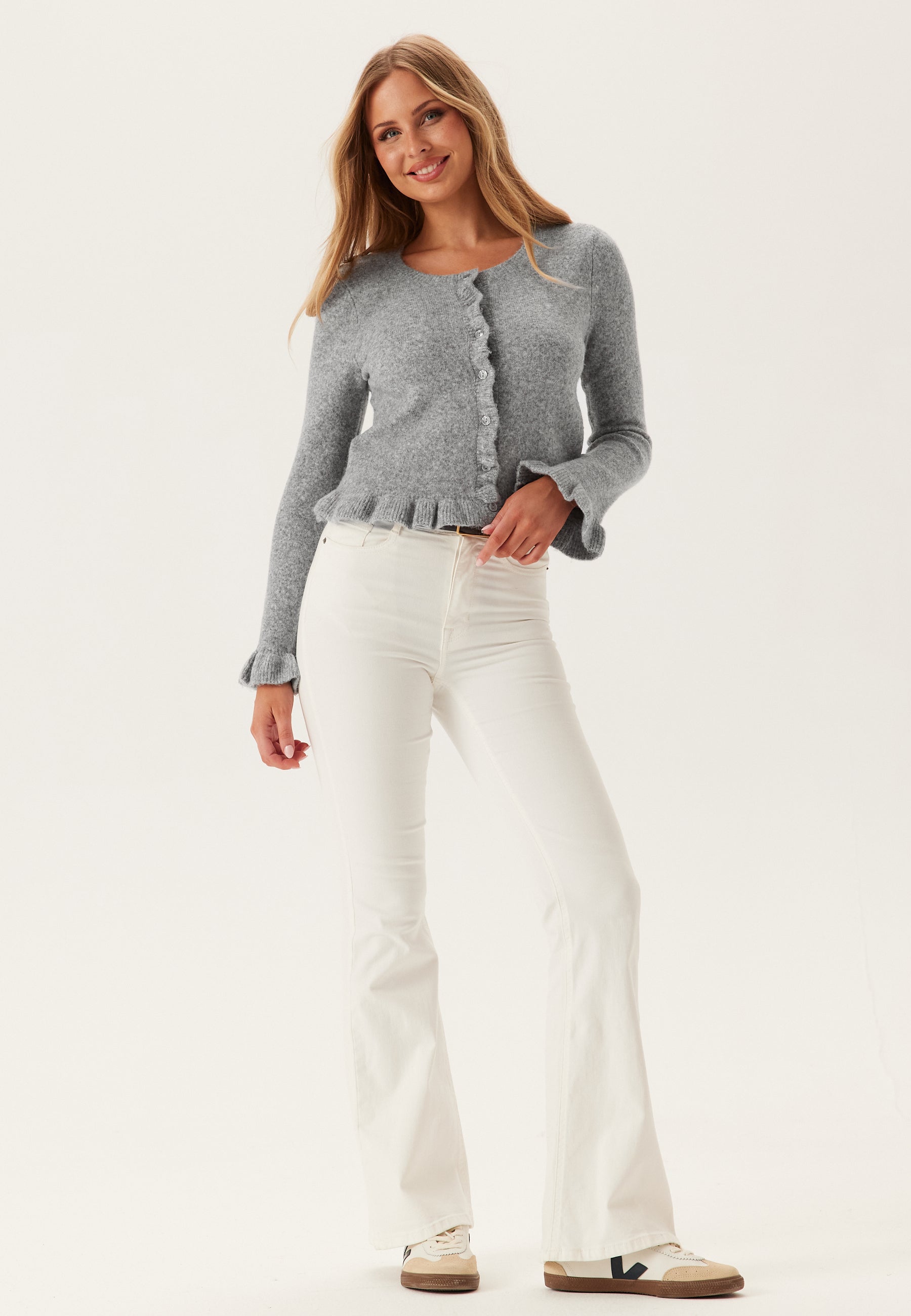 - Frill detail on the sleeve ends and at the hem