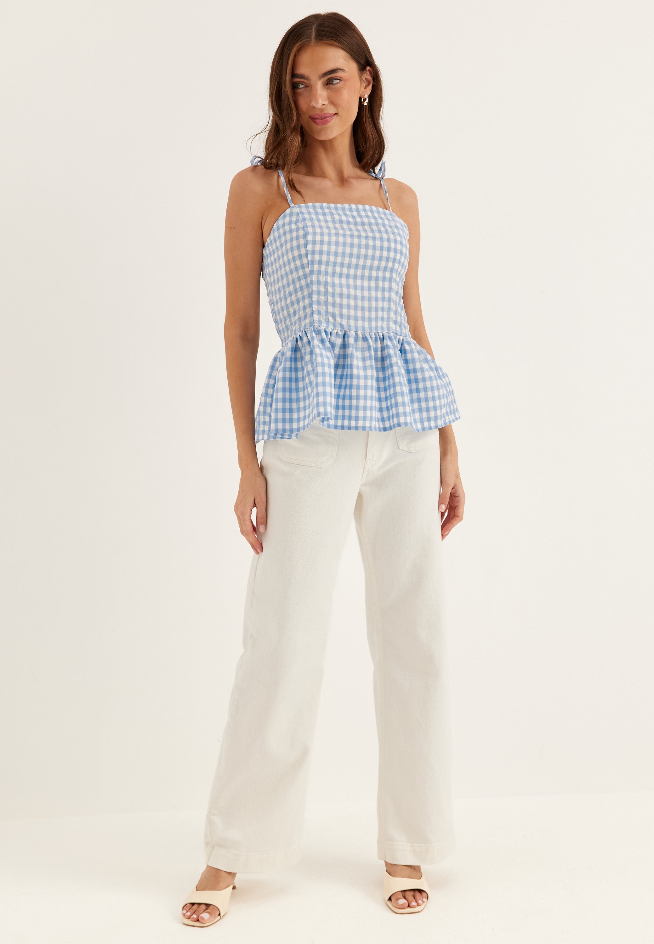 - Thin tie bands at the shoulder