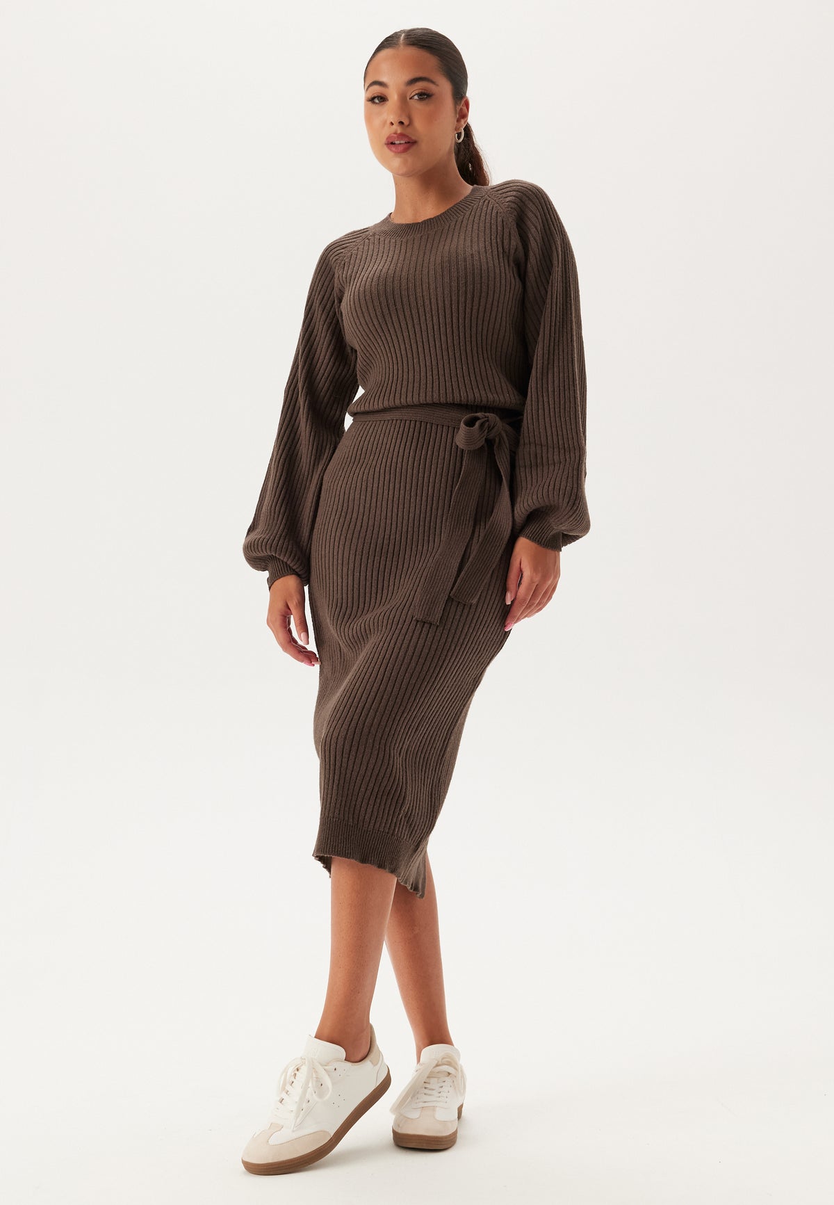 Round Neck Rib Knitted Midi Dress