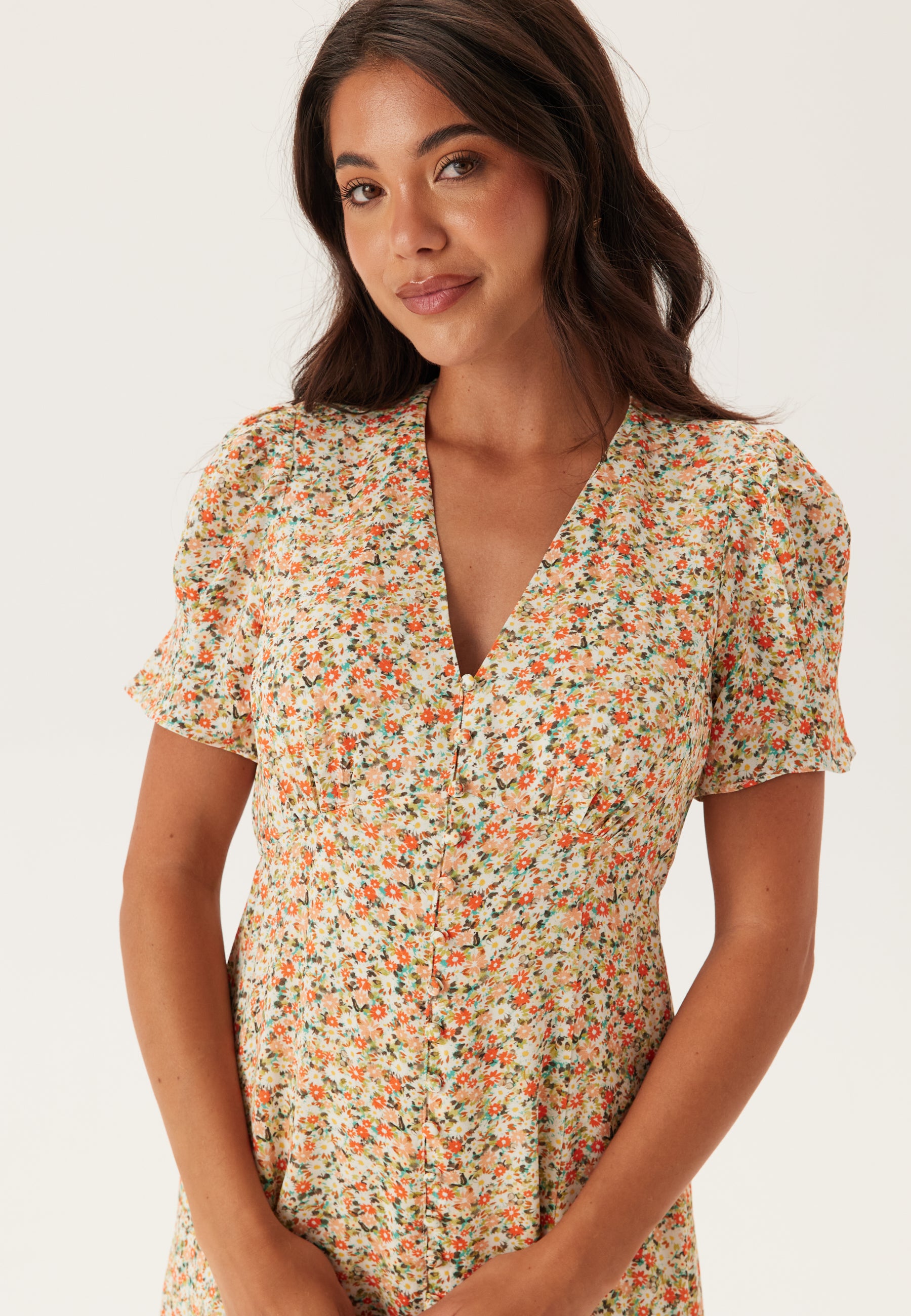 - Dressed closure buttons at the front