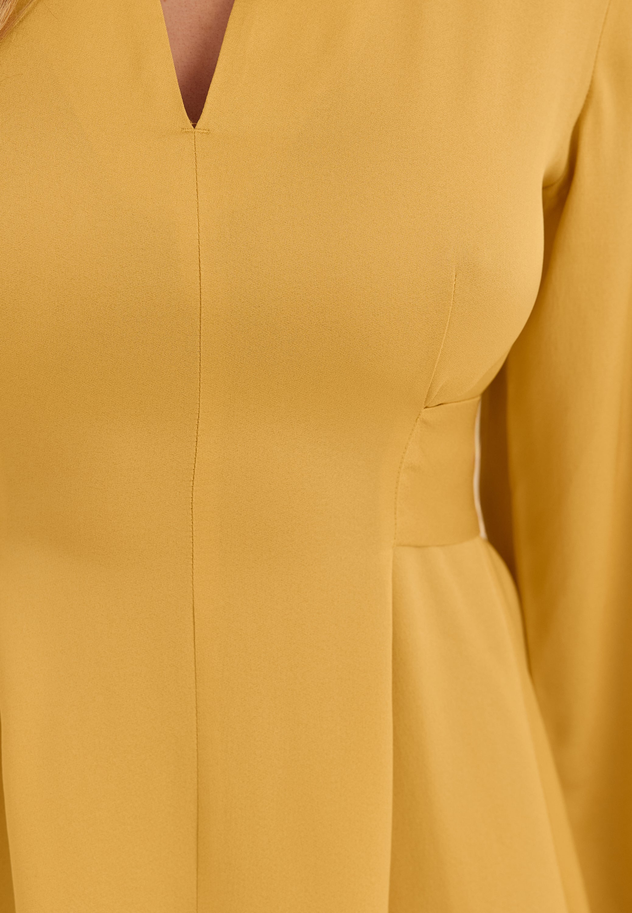- Slightly higher collar with v neckline