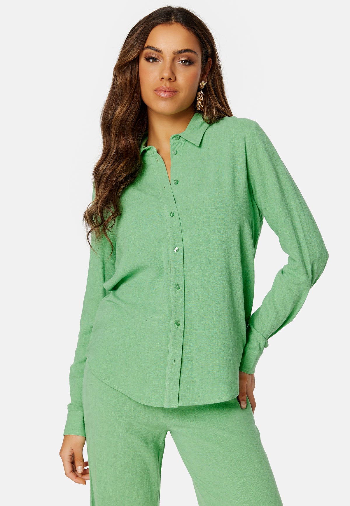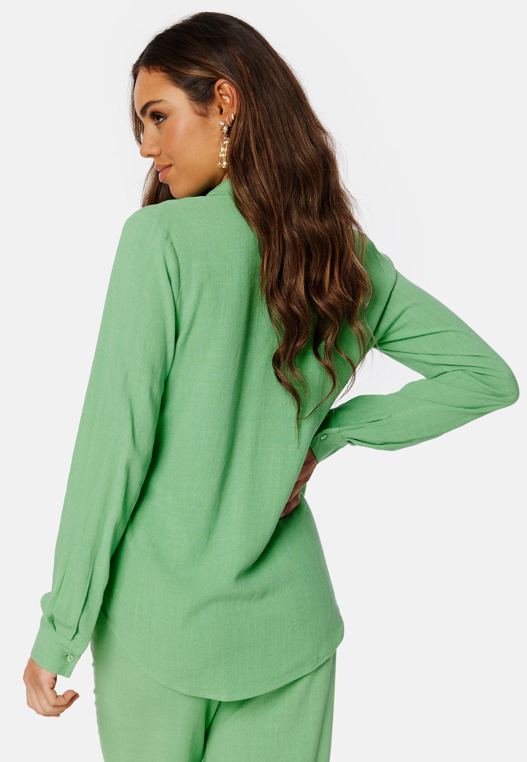 - Long sleeve with shirt cuff and button.