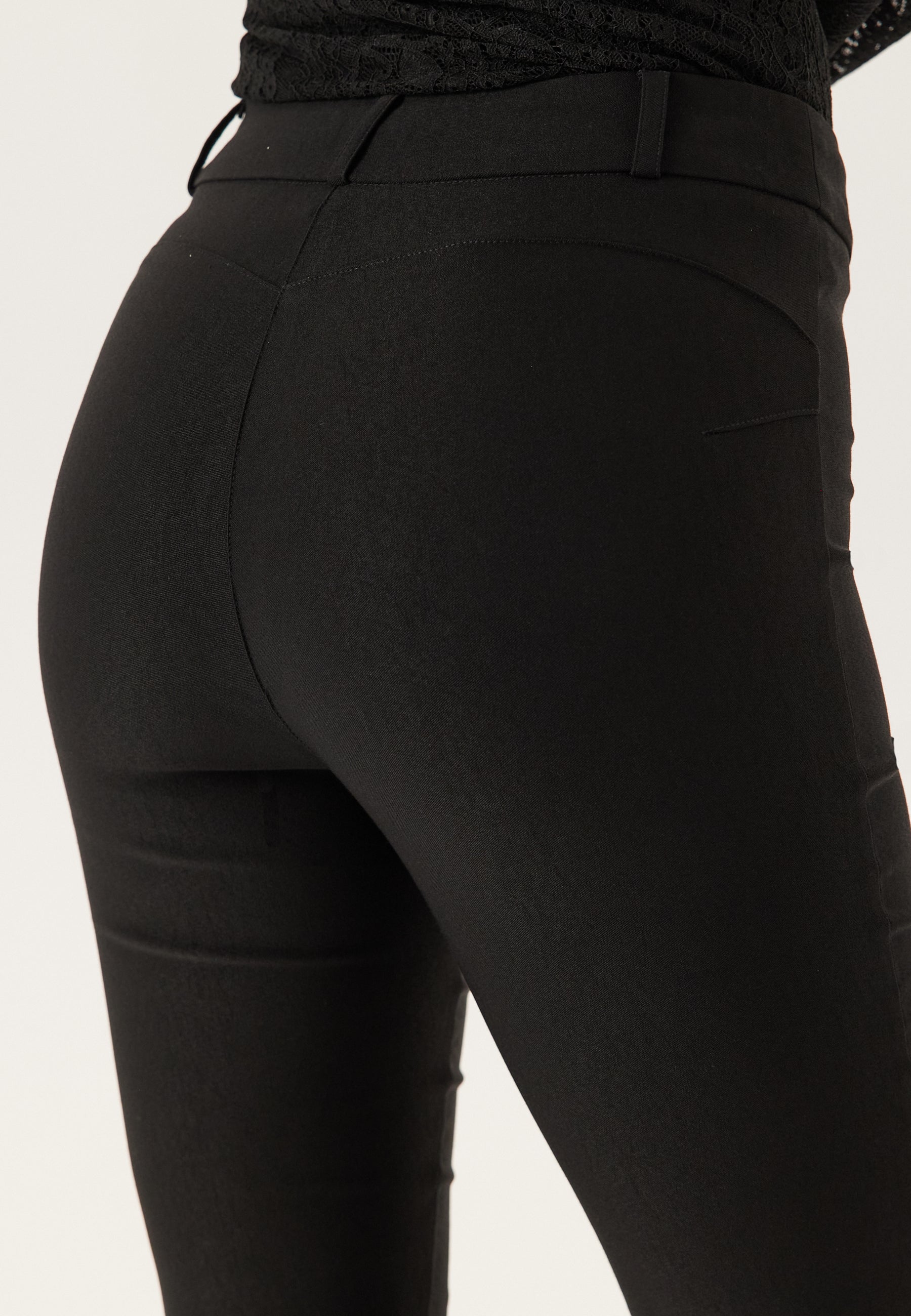 - Skinny fit with a straight leg ending
