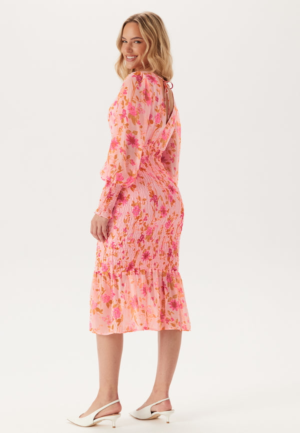- Figure-fit fit with stretchy, smocked sections