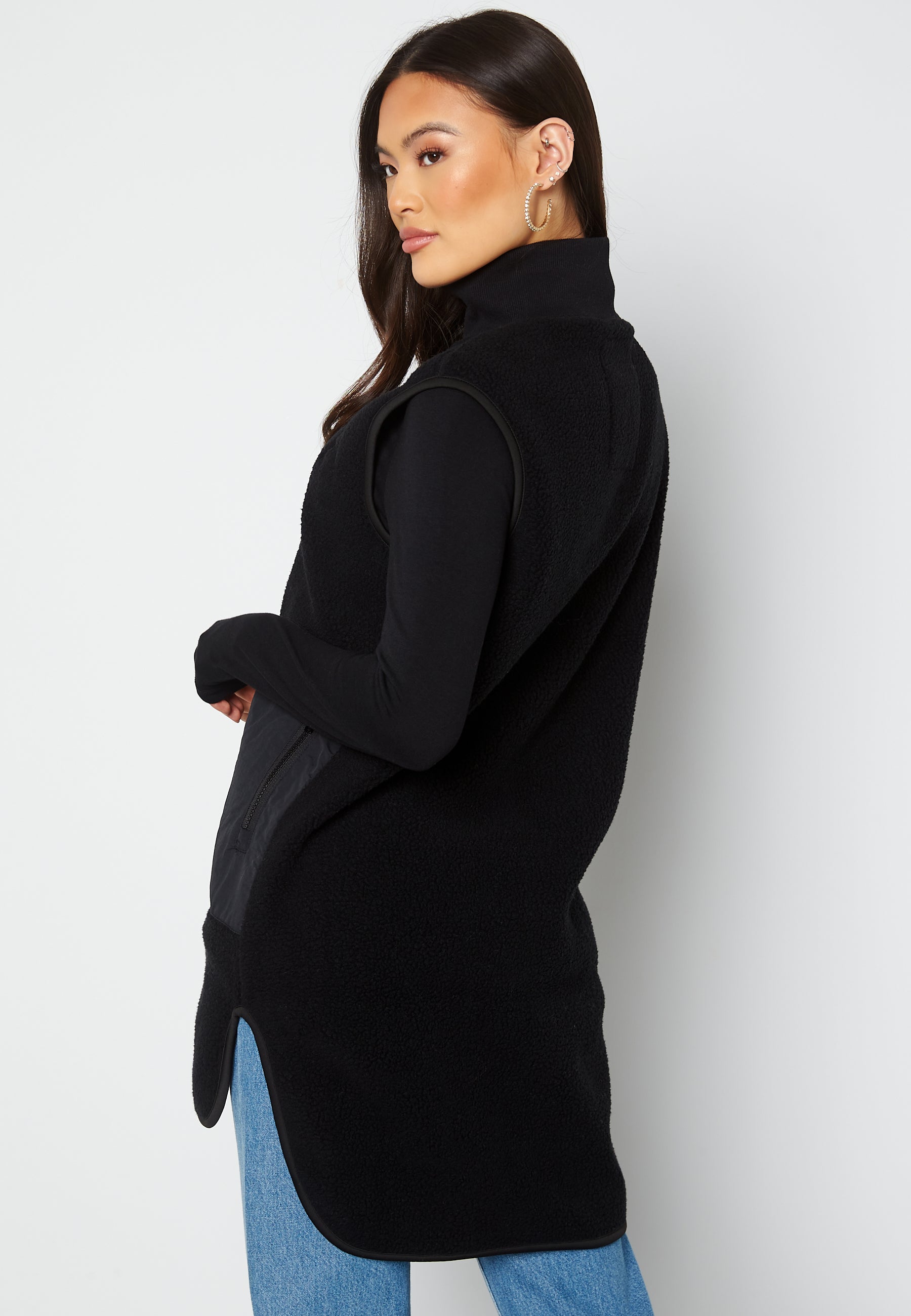 Trendy, long waistcoat in teddy fleece.
