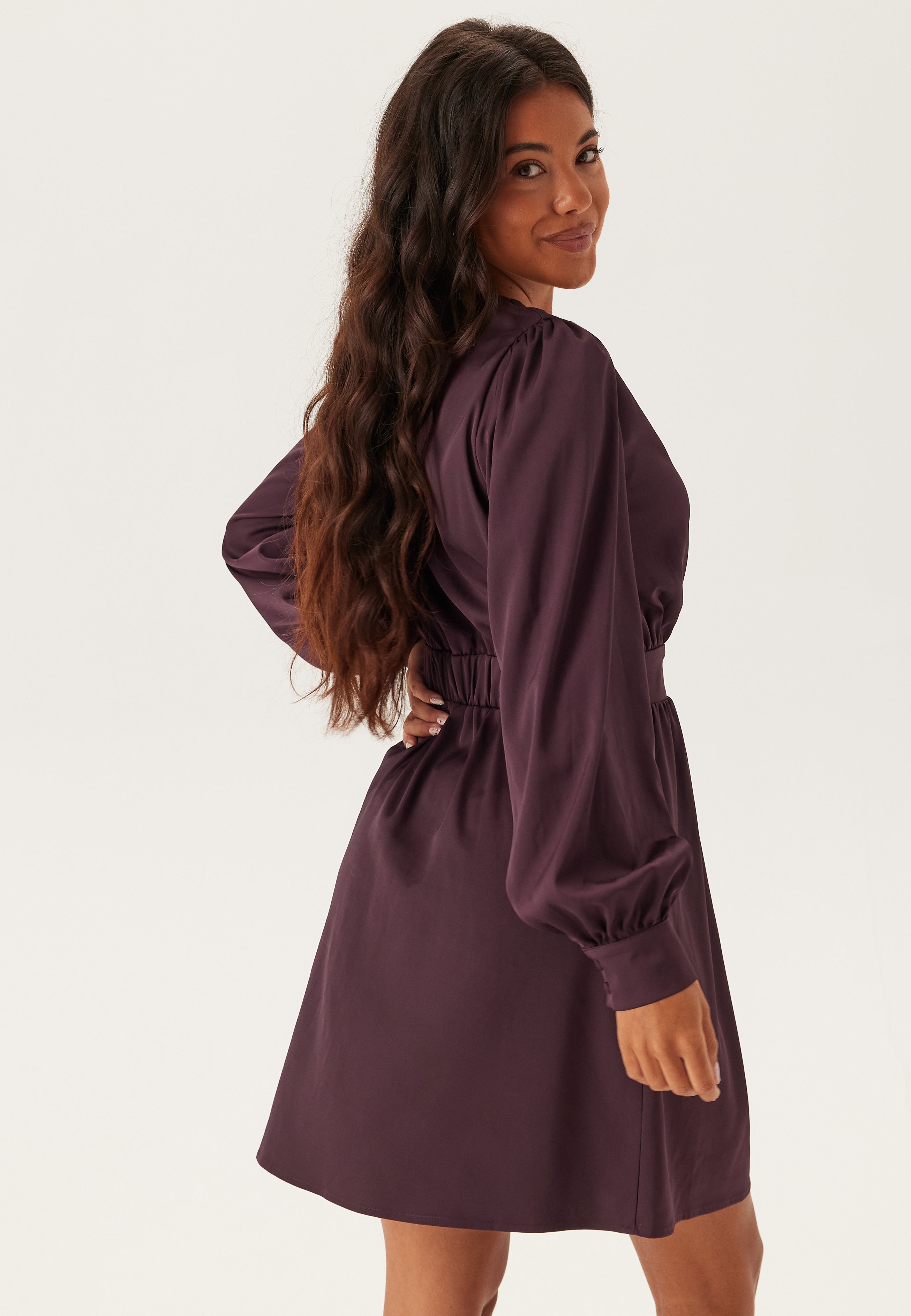- Defined waist with elastic at the back