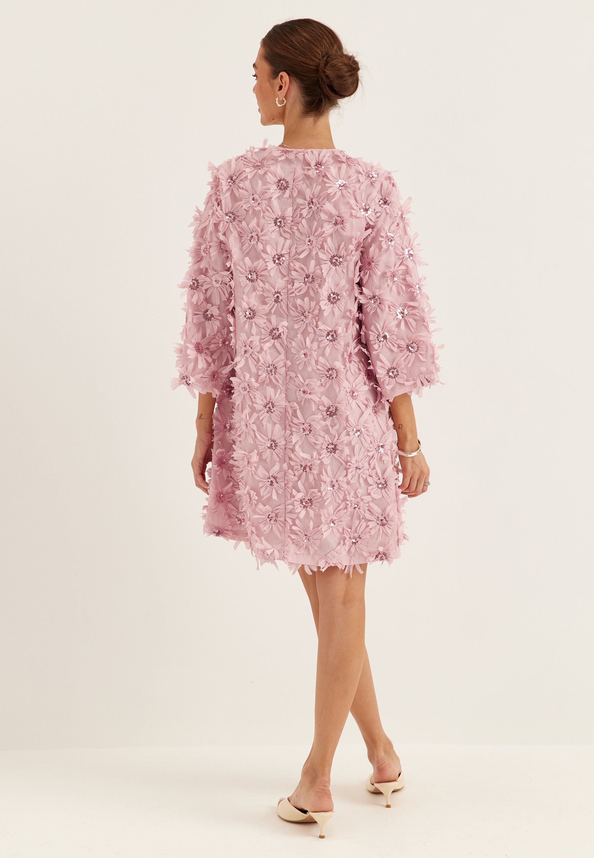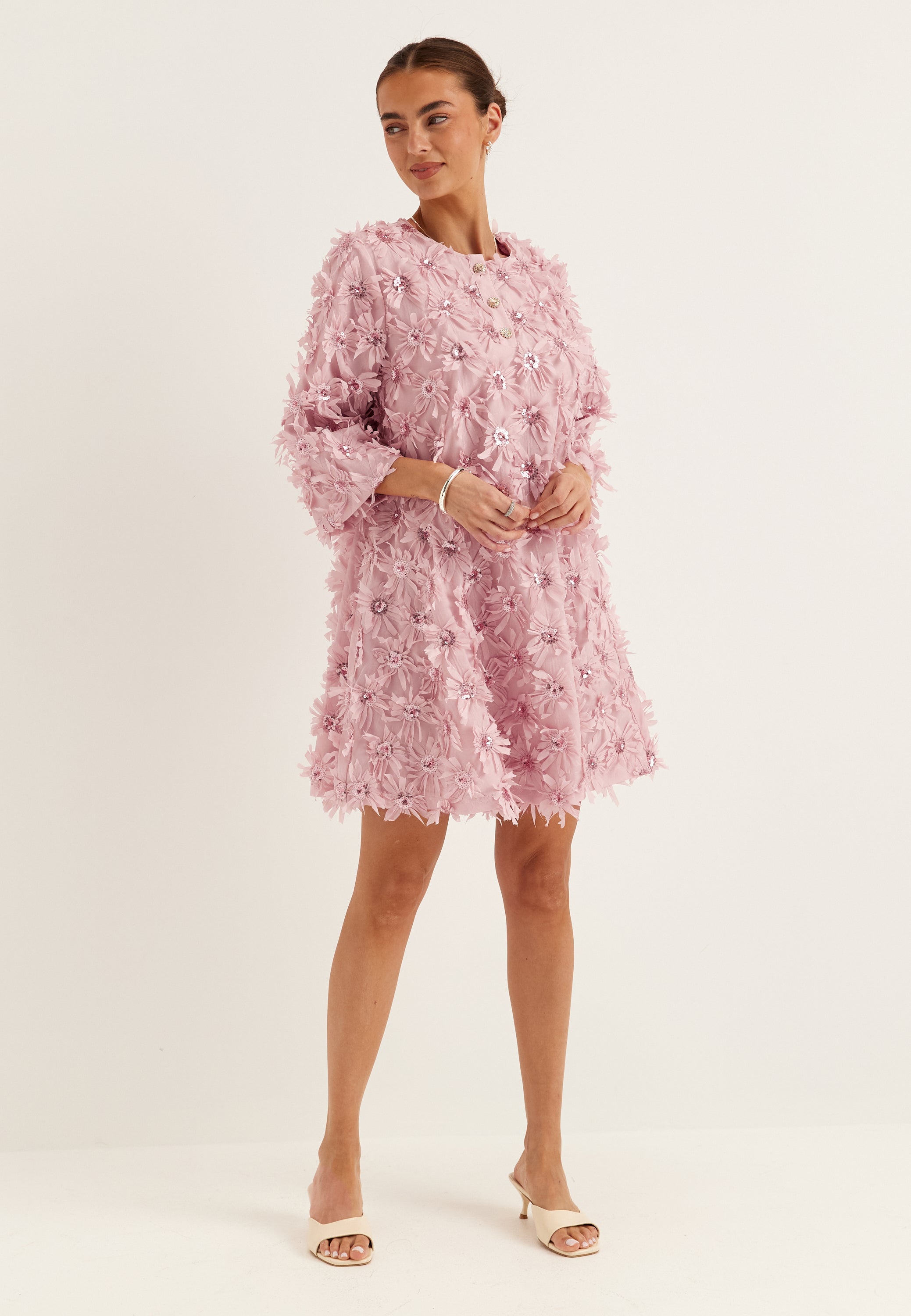 - 3D floral details with paillettes