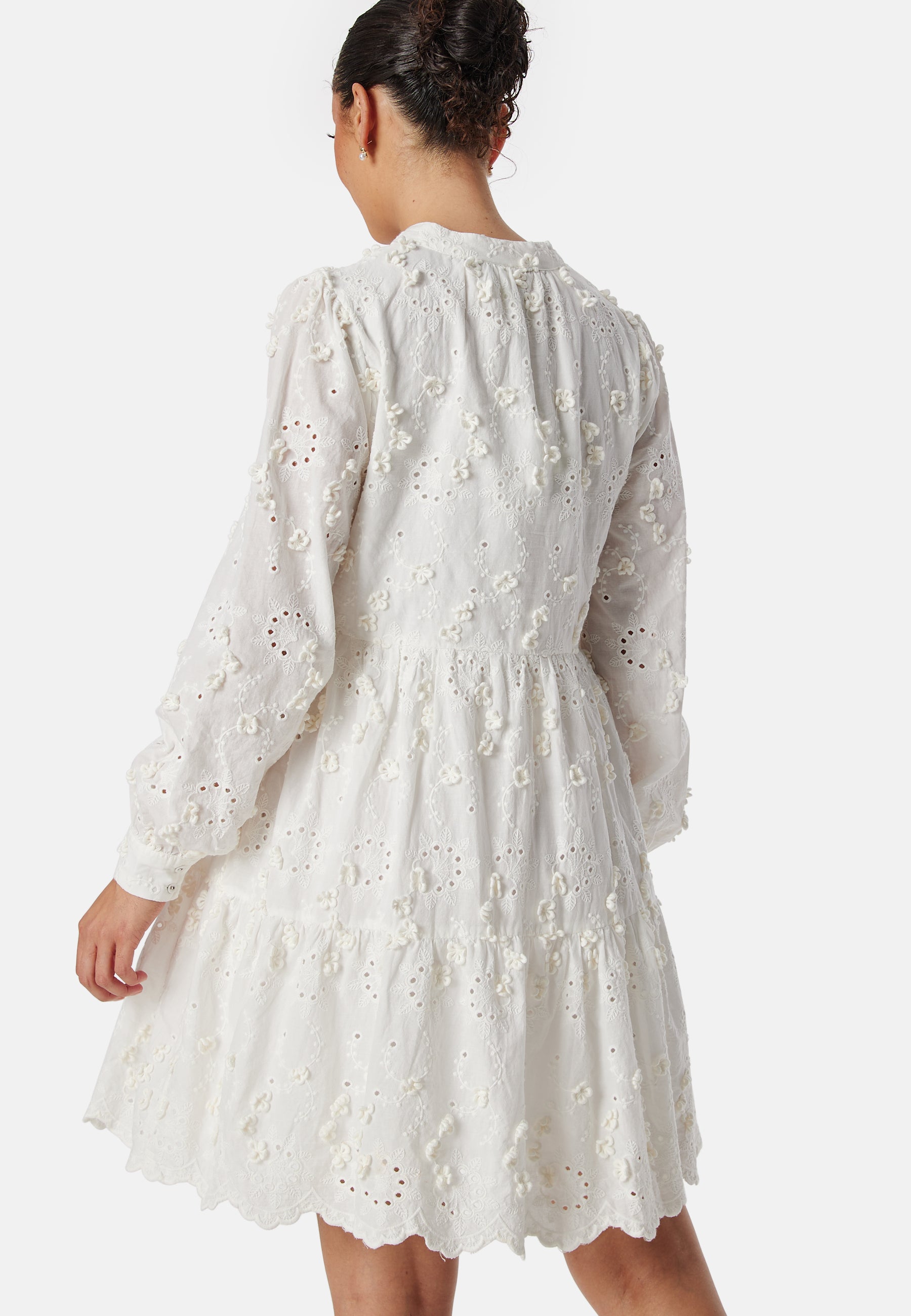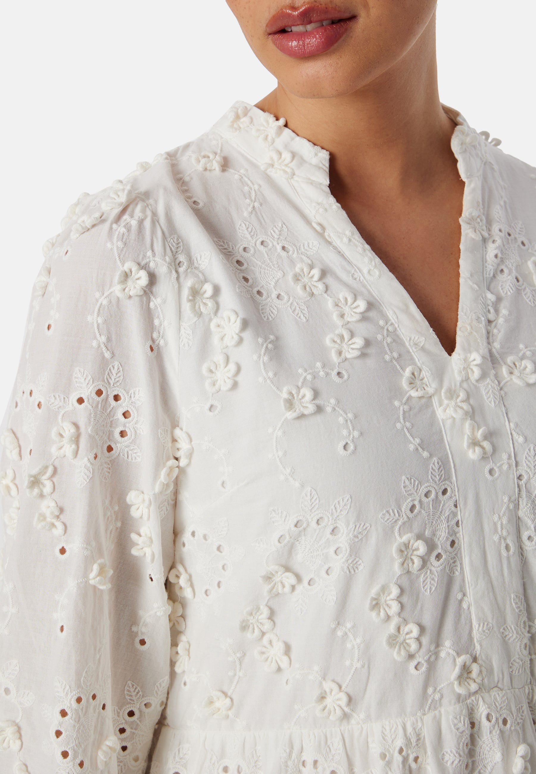 • Long-sleeved dress with hole embroidery.