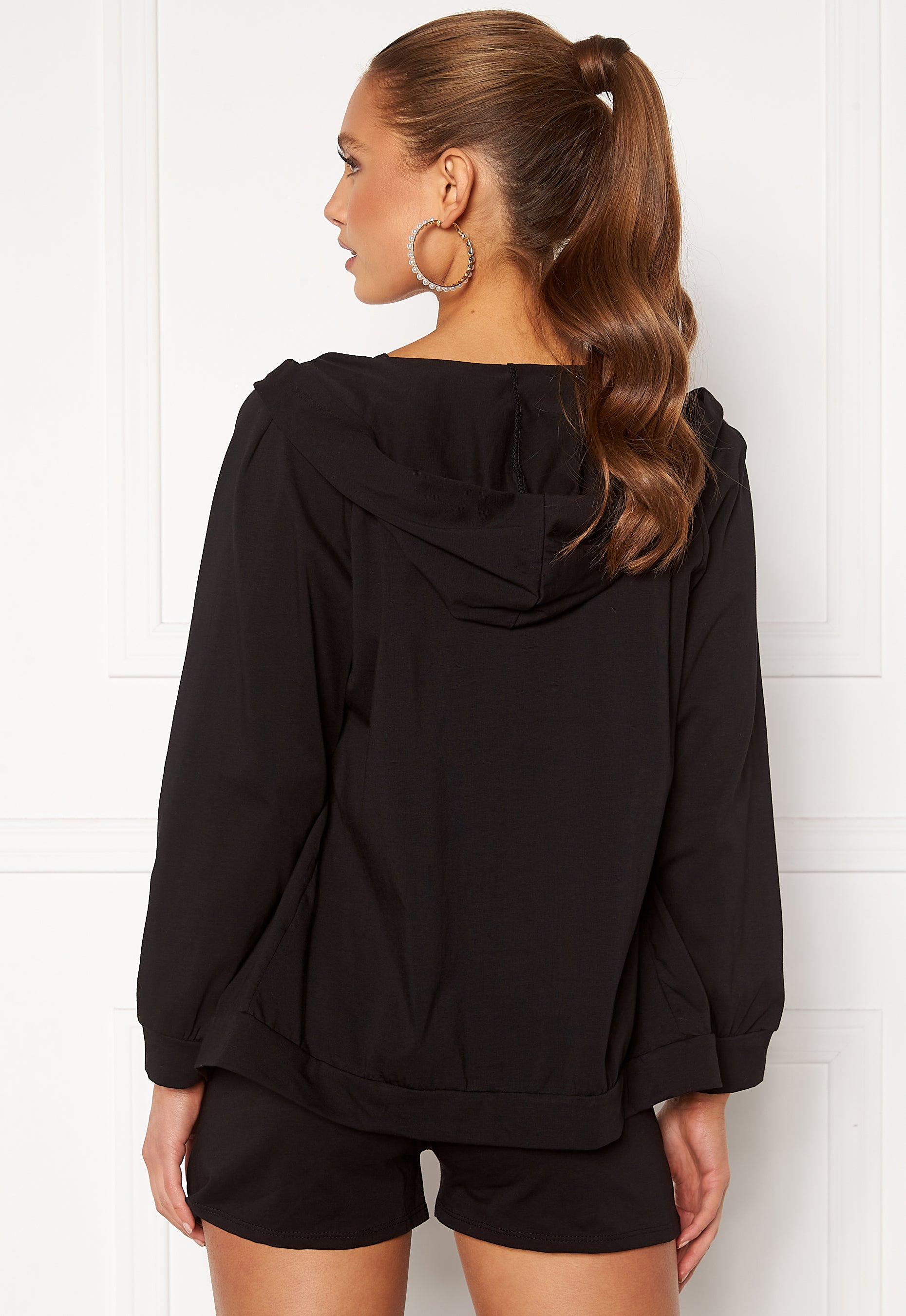 Herlig loungesett i tre deler, fra BOHEMIAN. Settet består av topp, cardigan og shorts i myk bomullskvalitet. - Myk, elastisk kvalitet - Croppet topp - Cardigan med hette (ikke avtagbar) - Høy midje med snøring og strikk - To lommer foran på nederdelen Innersøm 7 cm i str. S. Lengde fra skulder bak på topp 38 cm i str. S. Modellen er 175 cm høy og har på seg str. S. Maskinvask 30 grader.