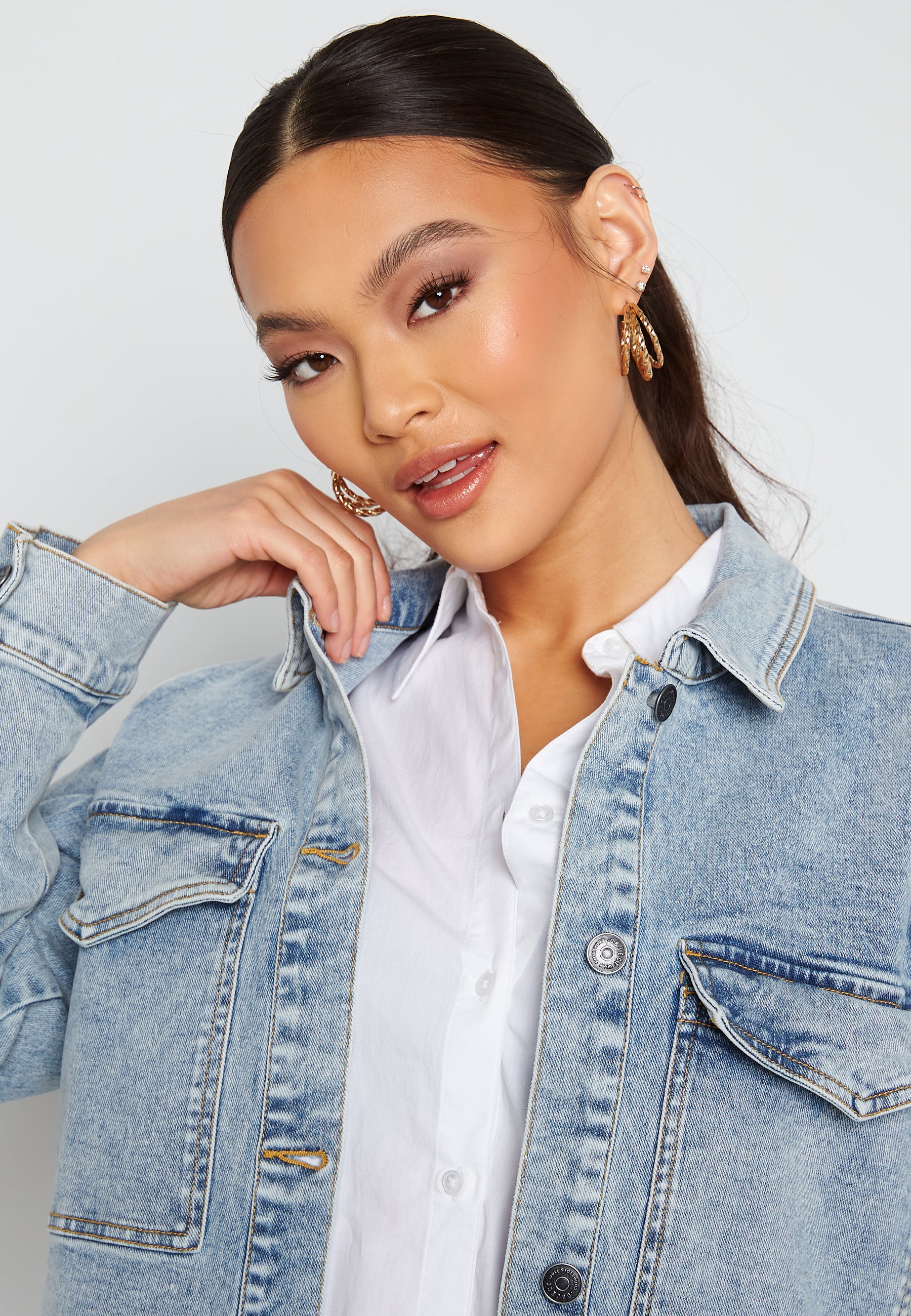 Fin, lang denim jakke fra Object Collectors Item.