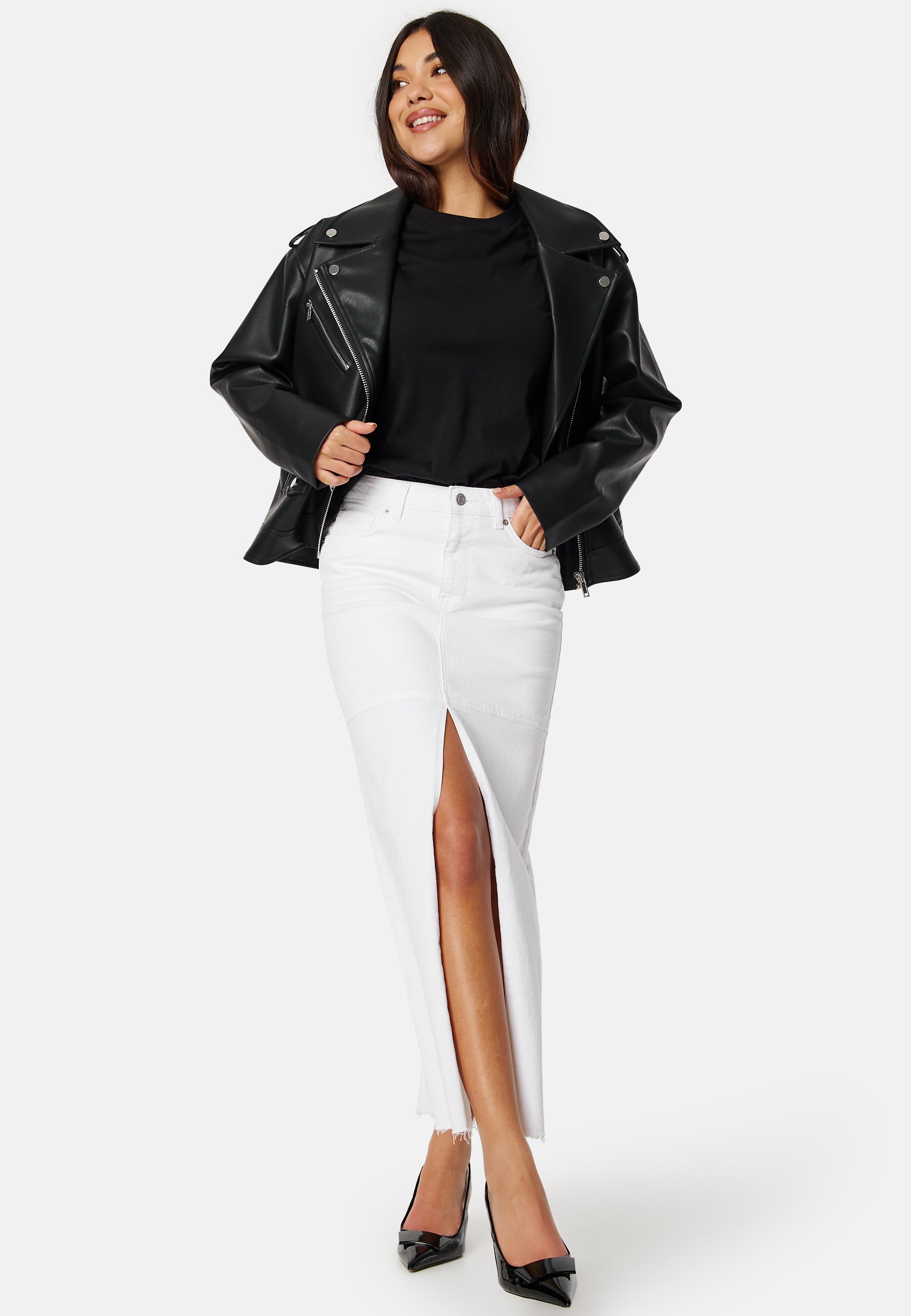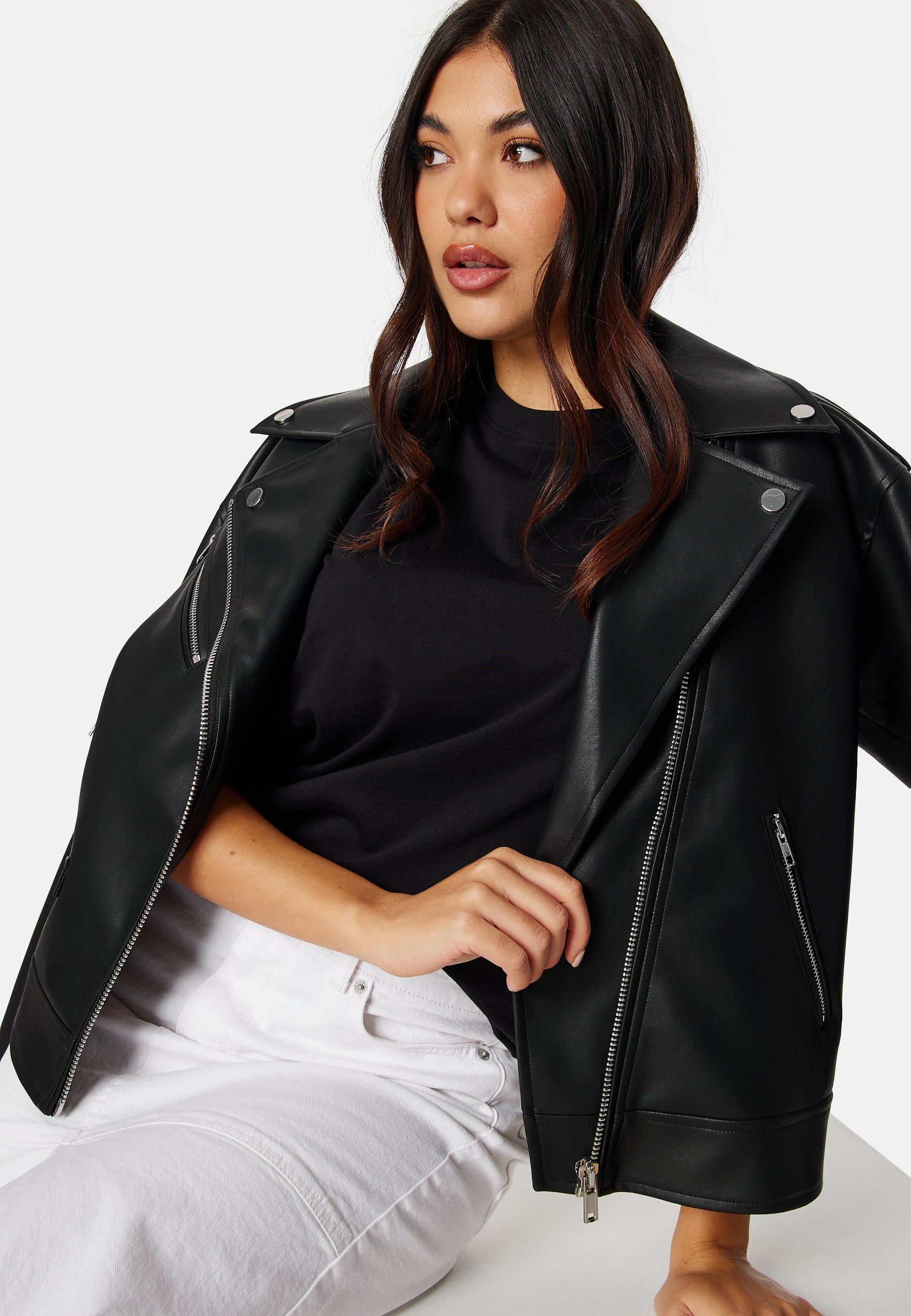 Fin, trendy biker jakke i PU fra BUBBLEROOM.