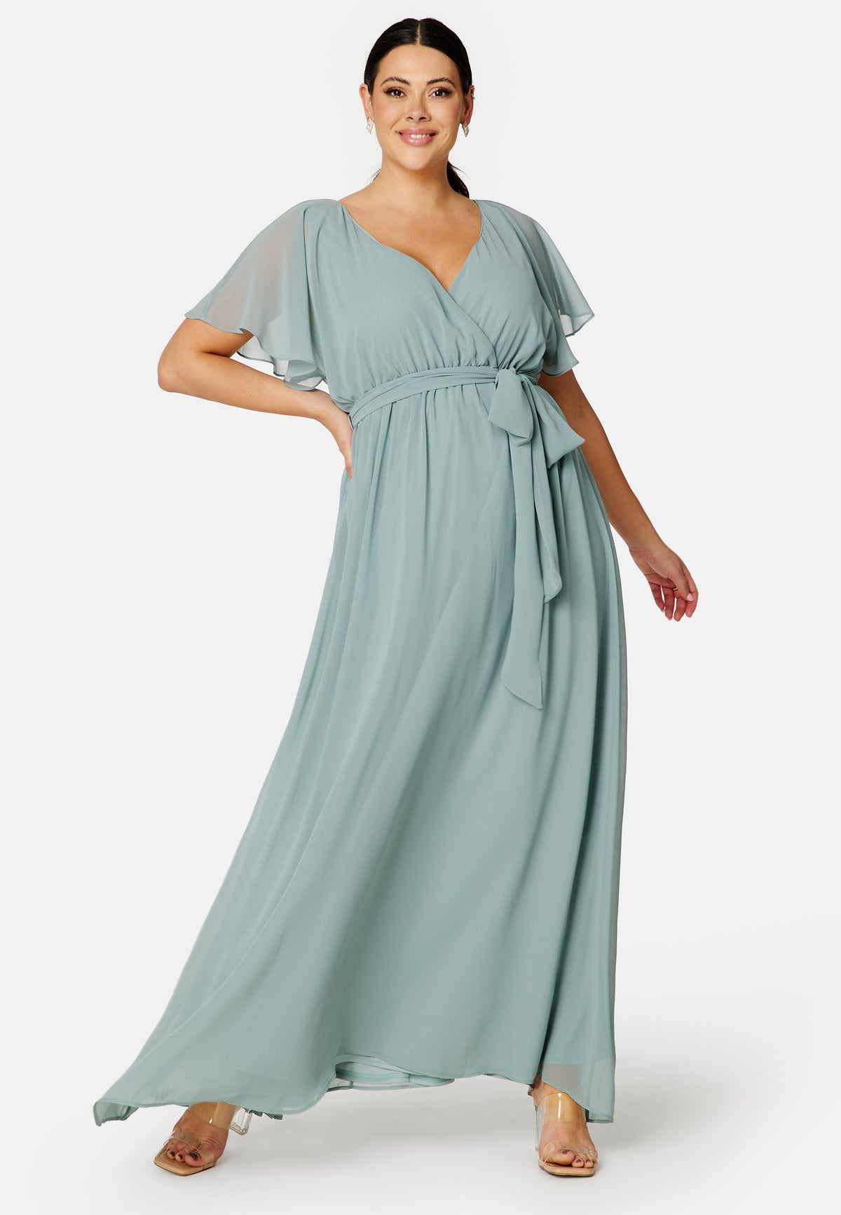 Vakker kjole fra Goddiva Curve med overlappdetalj.