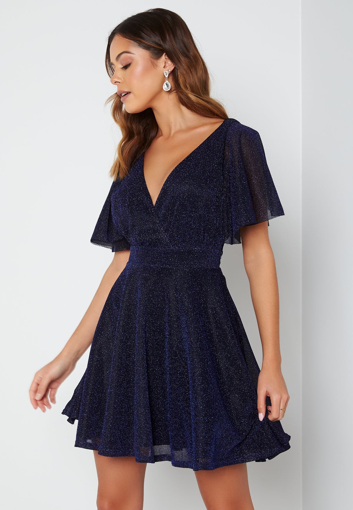 Flutter Sleeve Glitter Skater Dress