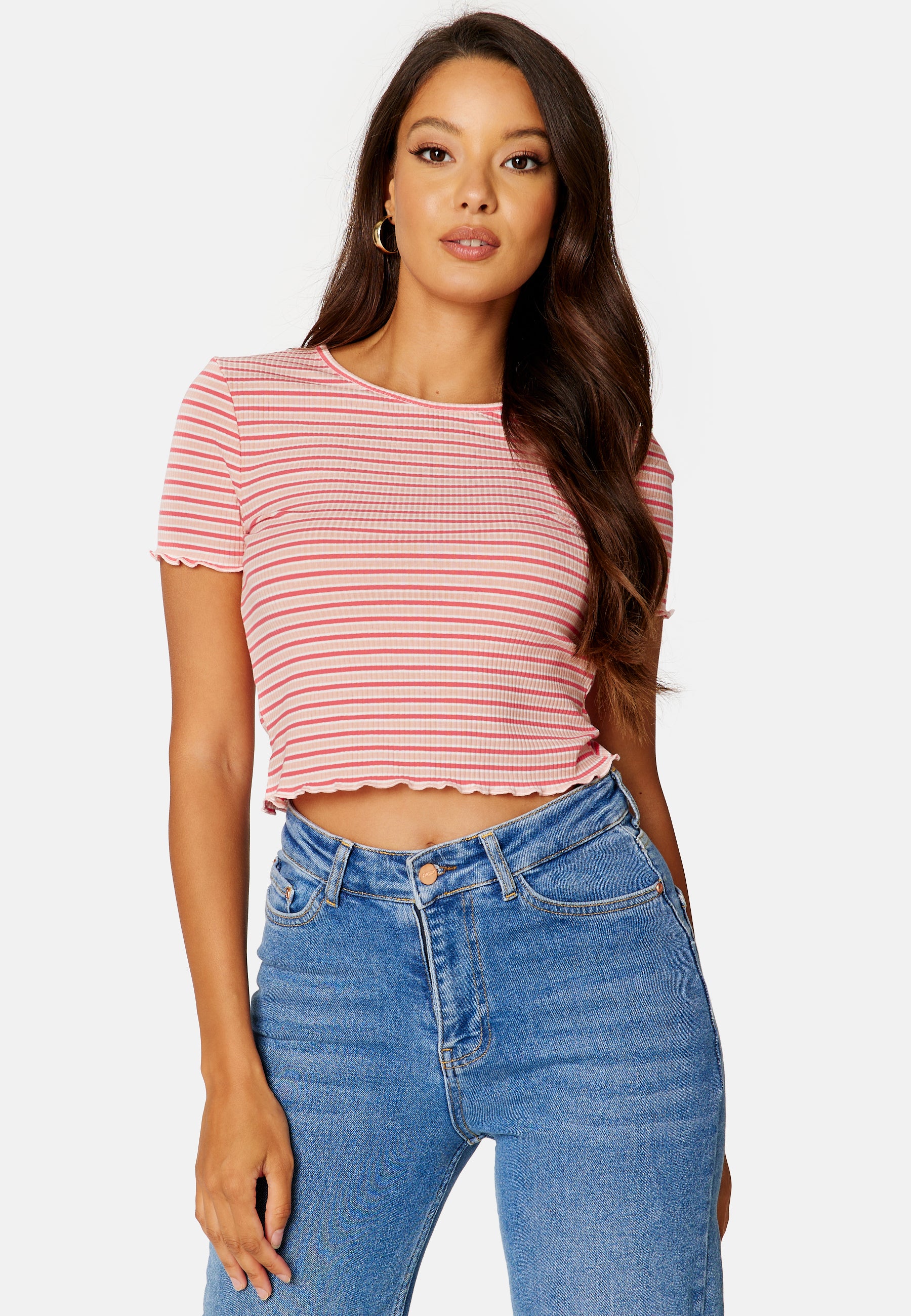 Ribbet topp med korte ermer fra BUBBLEROOM.