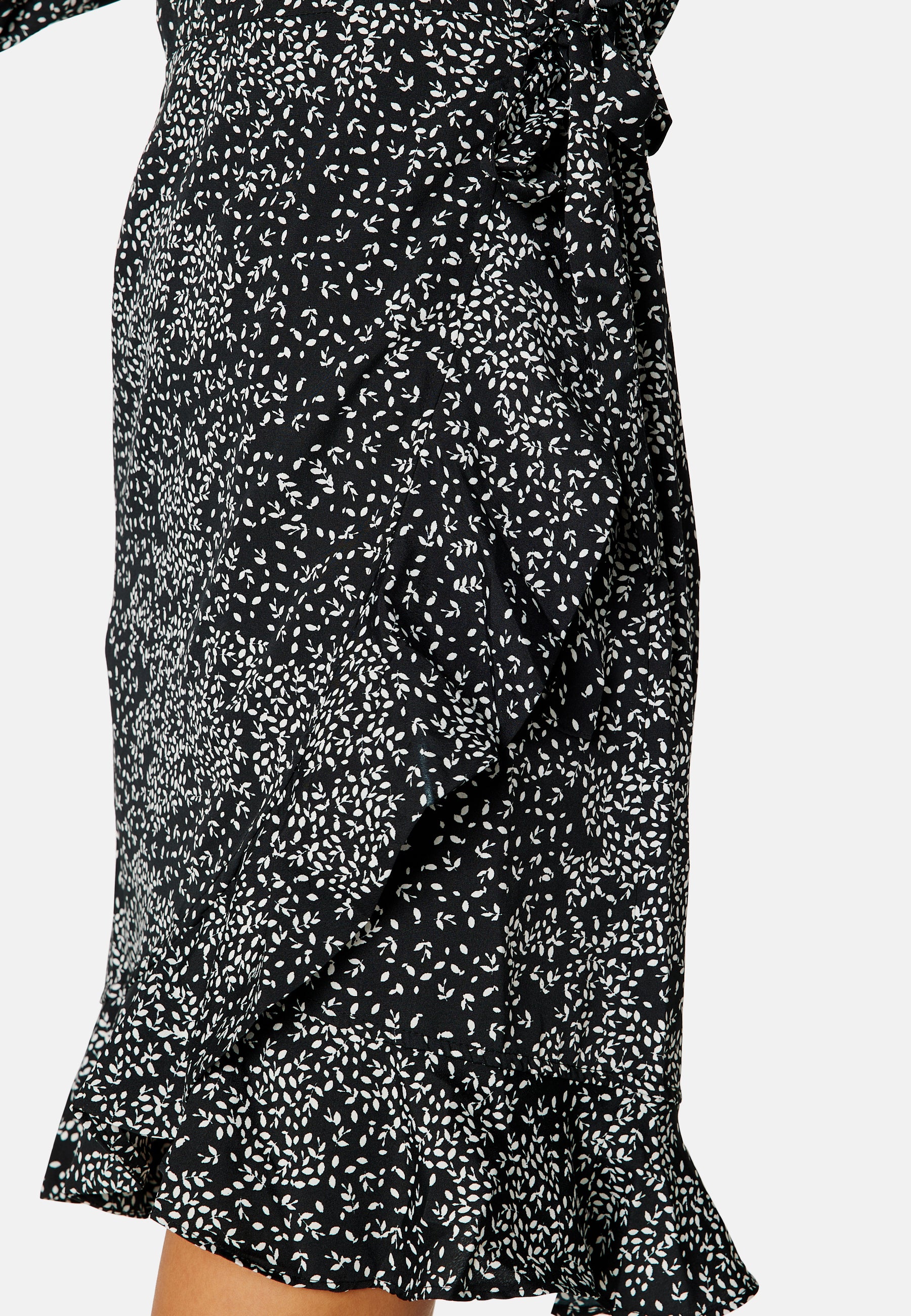 Superfin volangkjole i resirkulert Polyester, fra VERO MODA. - Vevd, uelastisk kvalitet - Omslagsmodell med knyting i siden (ikke avtagbar) - Volang nede - V-utringet Lengde fra skulder bak 101 cm i str. S. Maskinvask 30 grader.