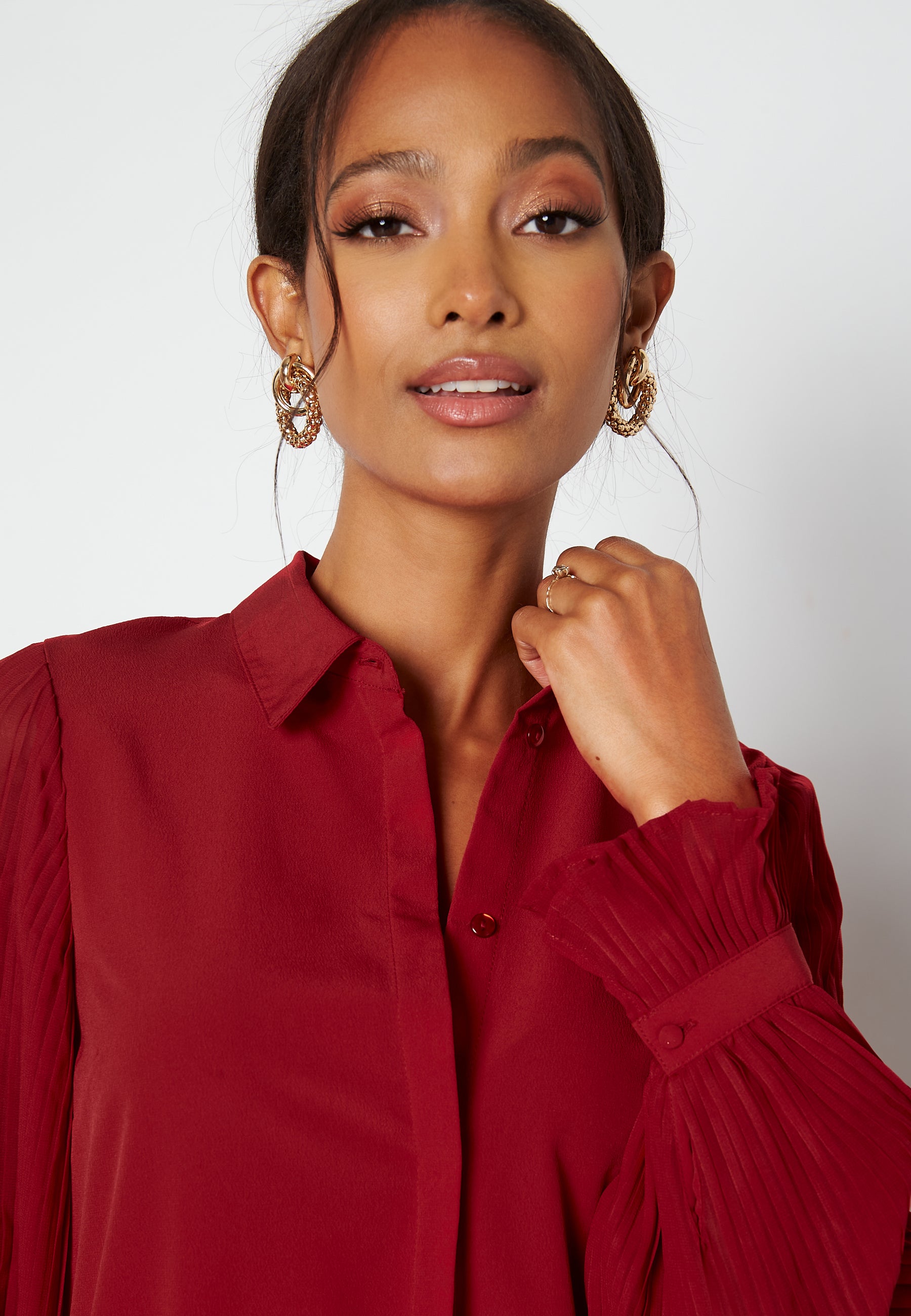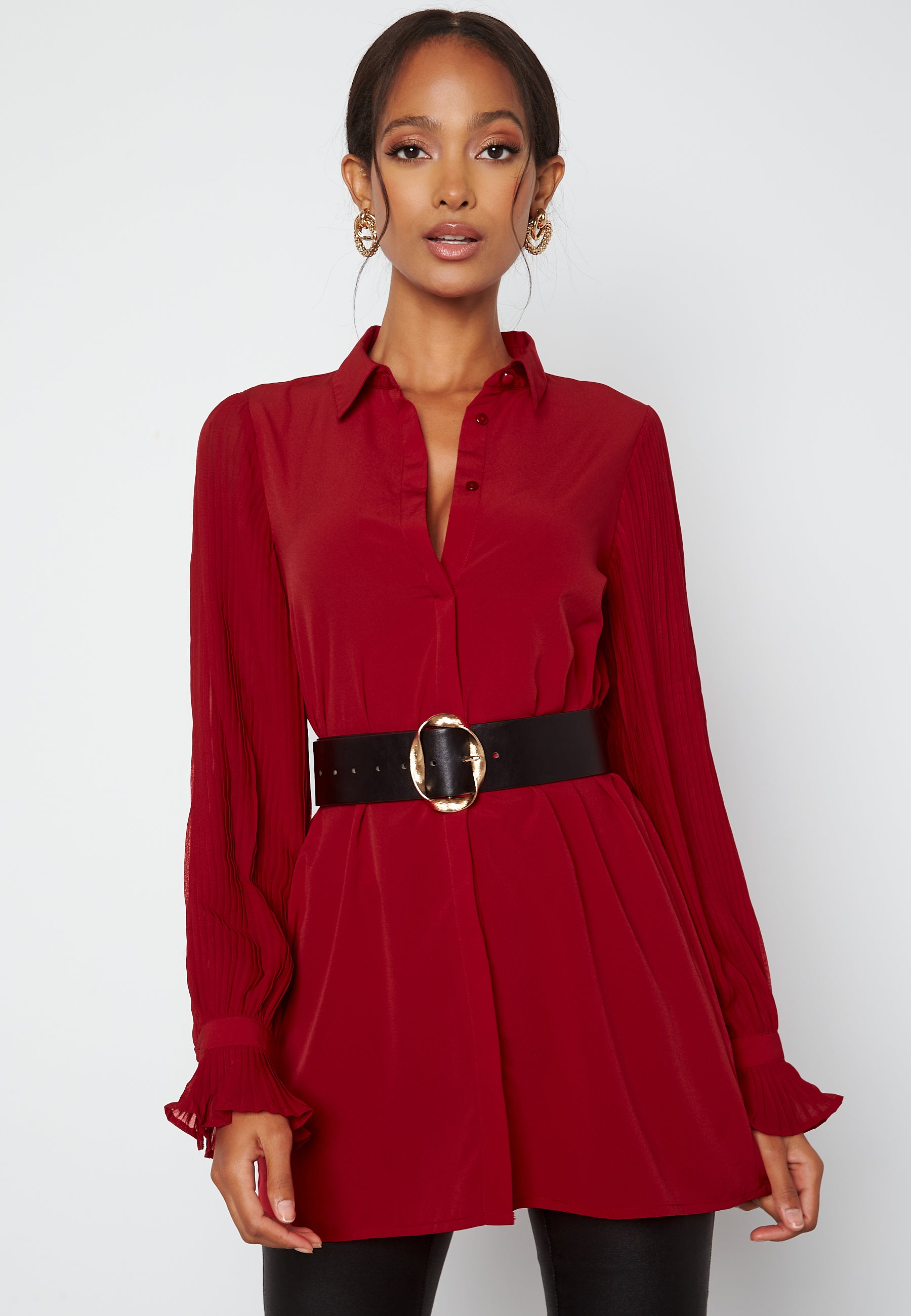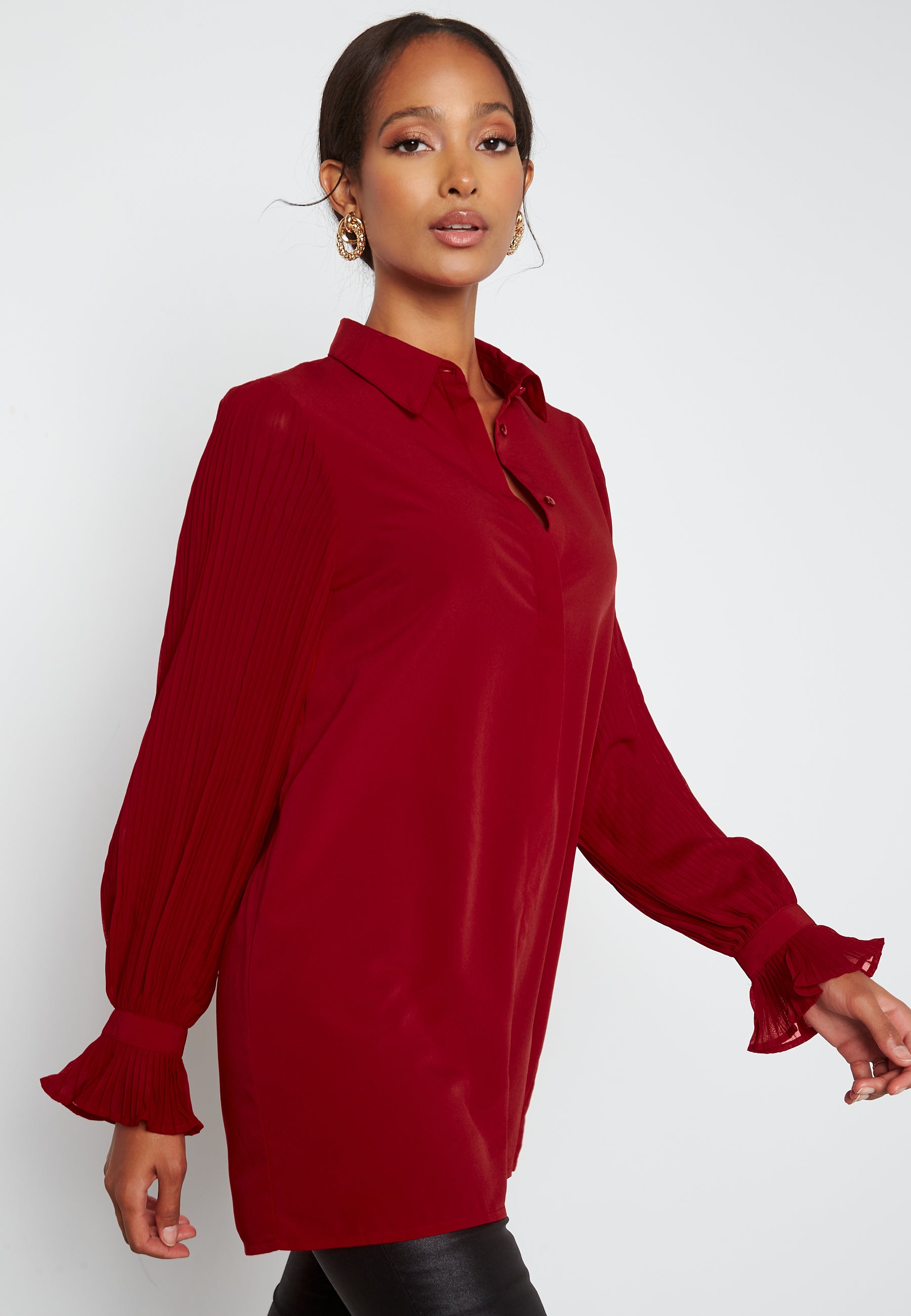 Tunika med arm med plissé.