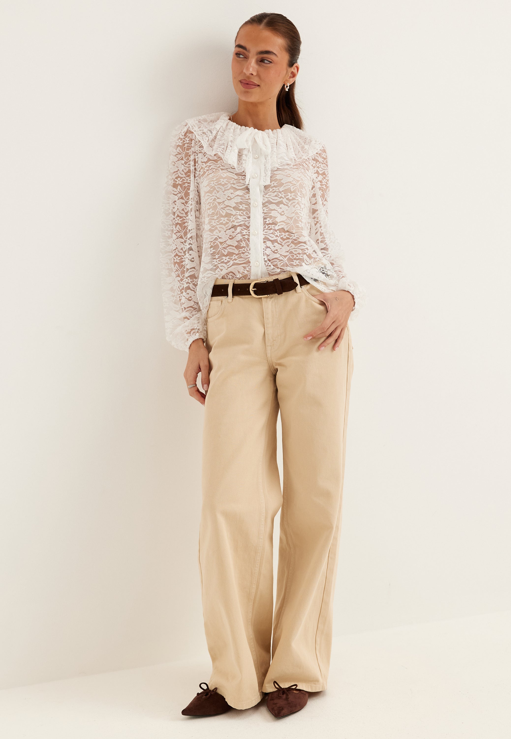 - Knytbar halsutringning med en volangen