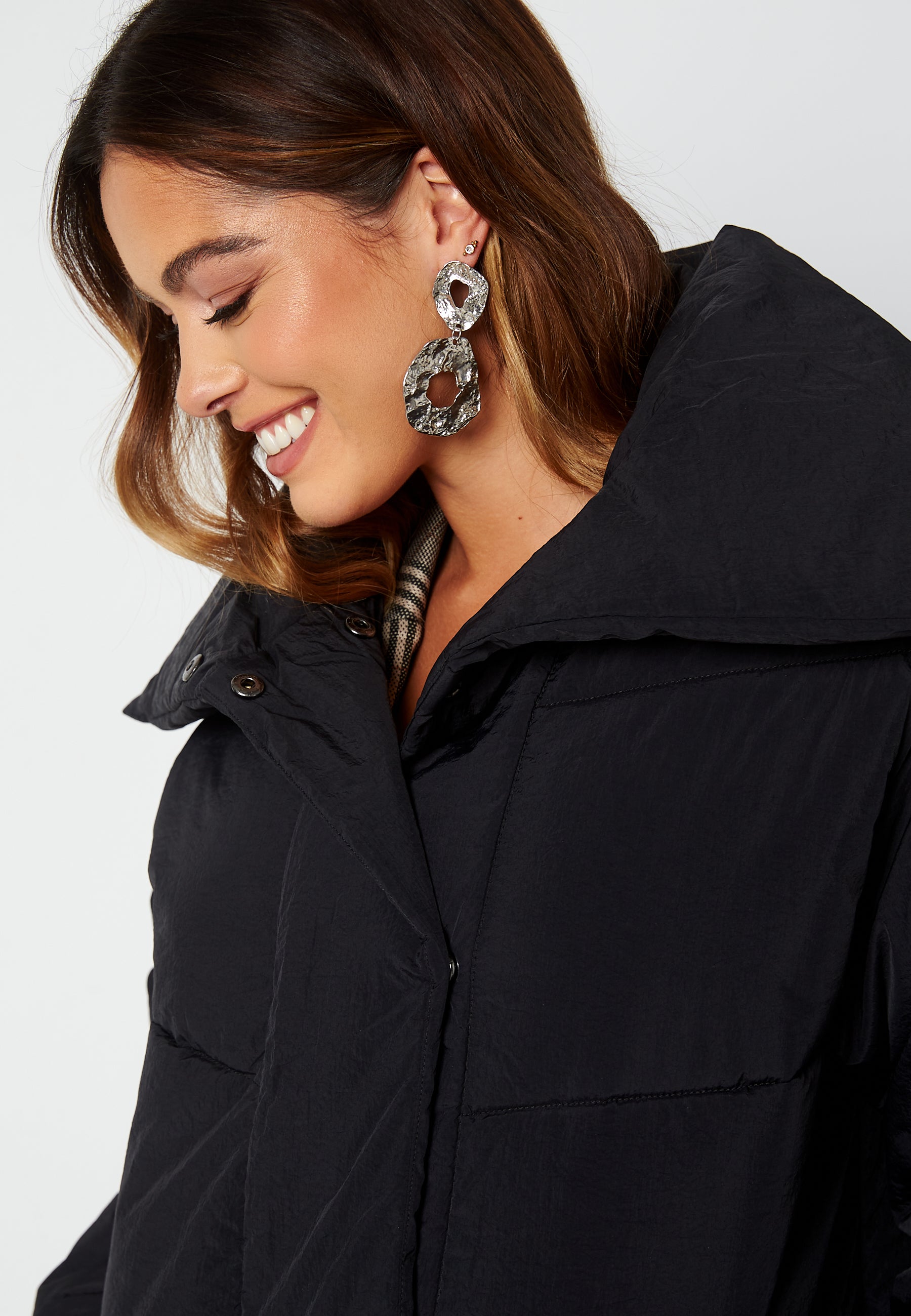 Lang, koselig vattert jakke.