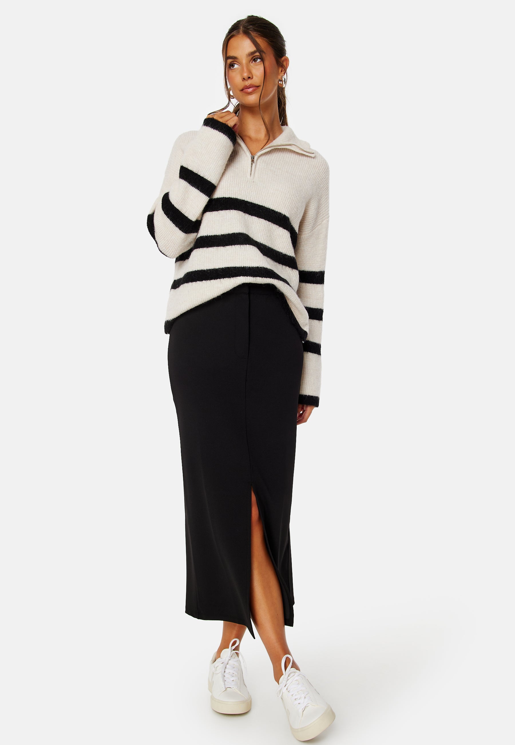 - Høy hals med en glidelås.