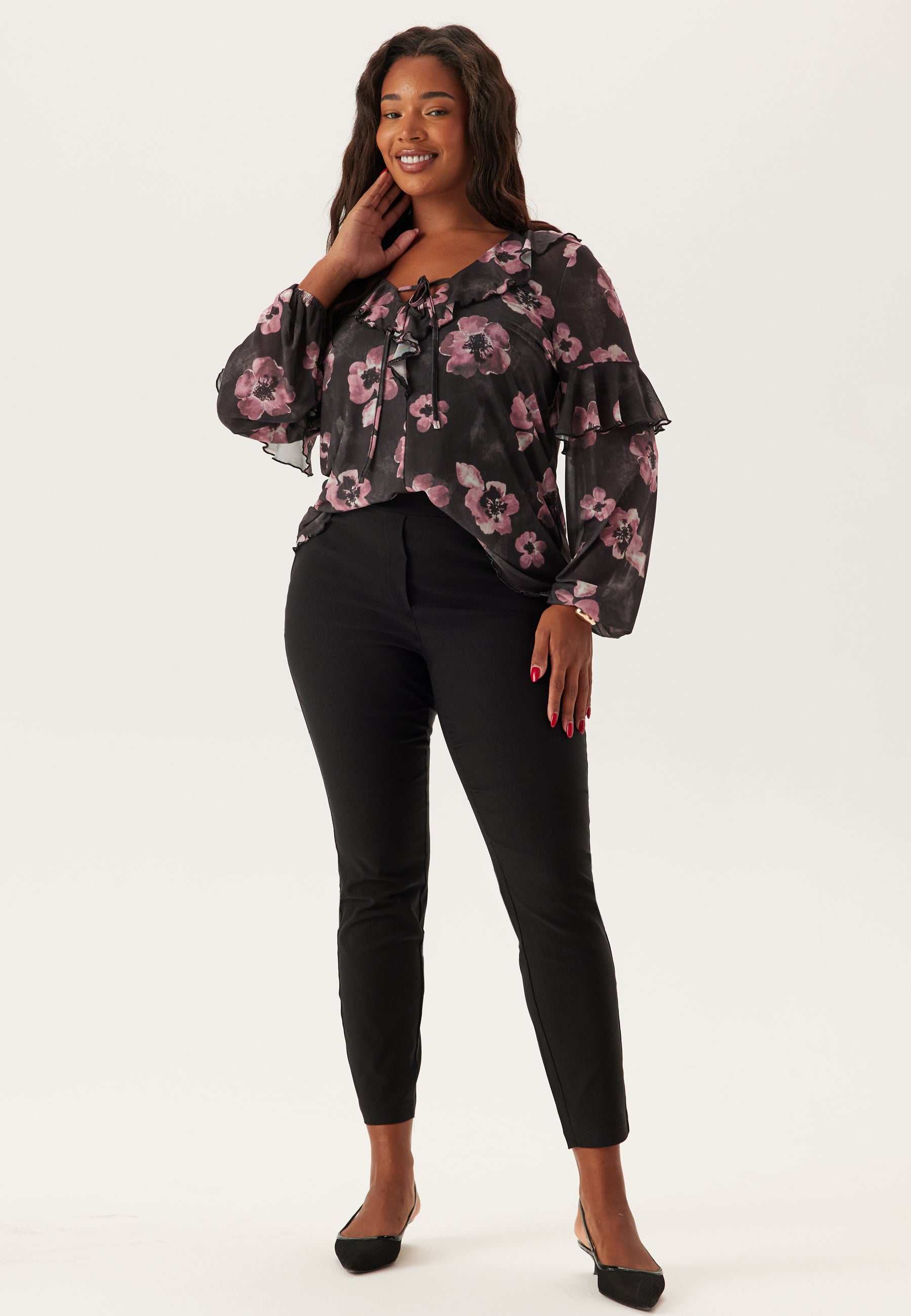 - Løs, smigrende passform