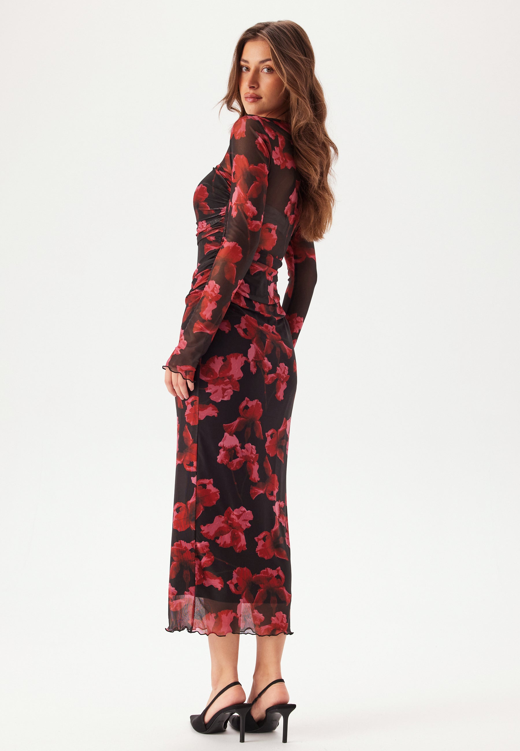 Mesh Ruched Ankle Dress