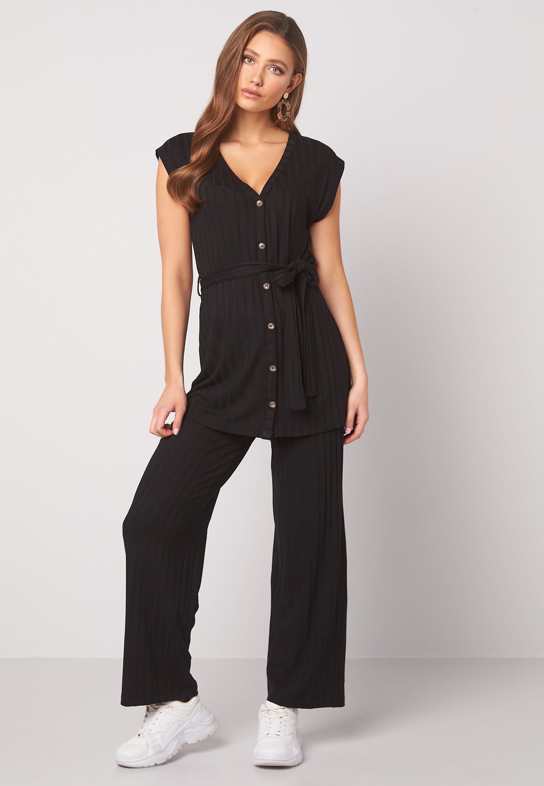 Ermløs, ribbet topp i jersey.