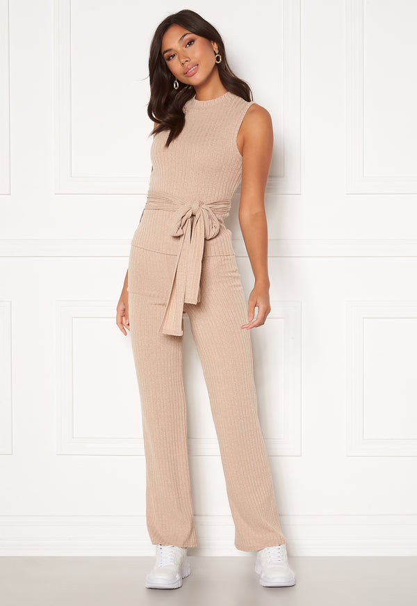Ermløs, ribbet topp med en knytbar stropp ved midjen.
