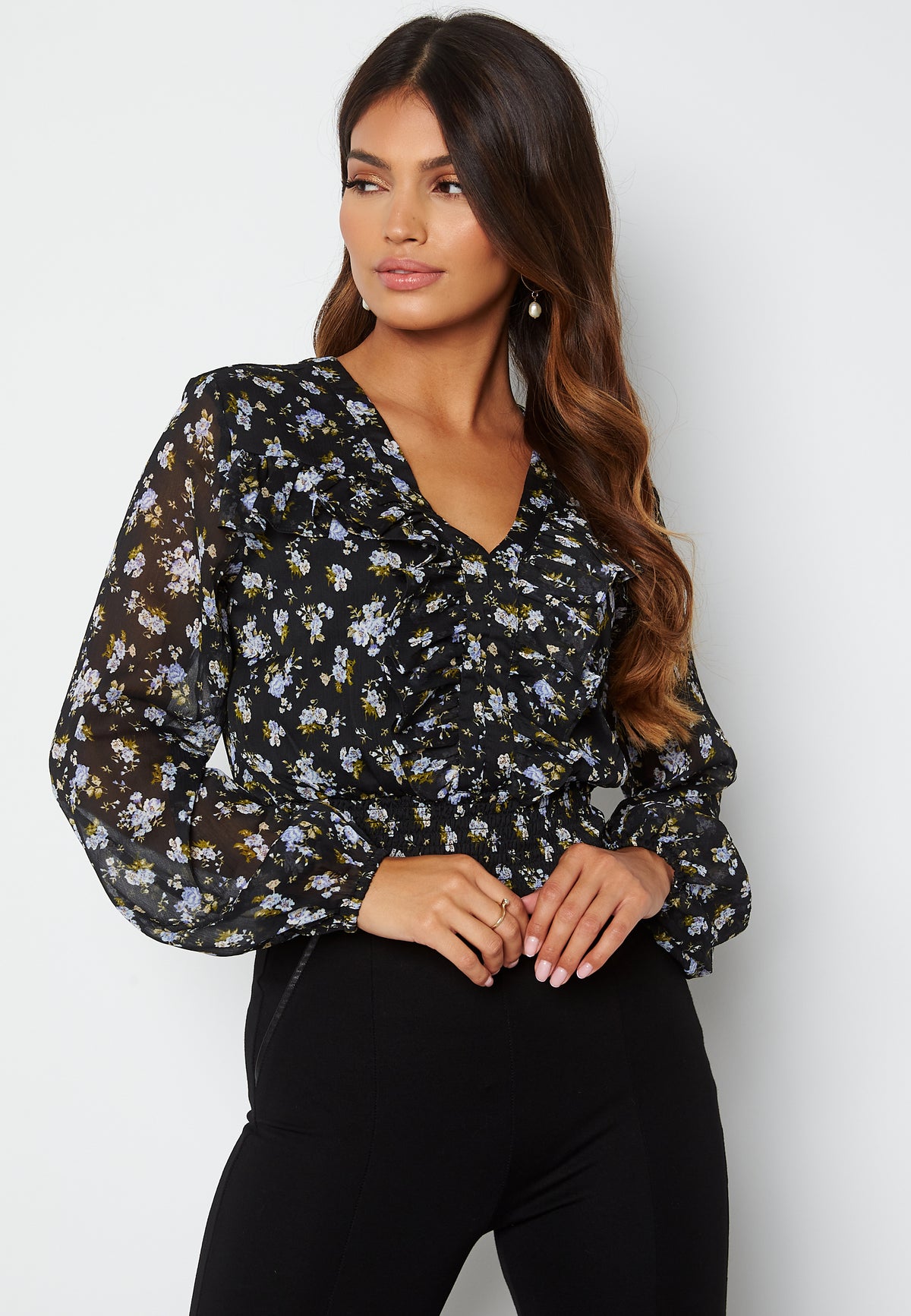 Feminin bluse fra BUBBLEROOM med en vaffelsøm ved midjen