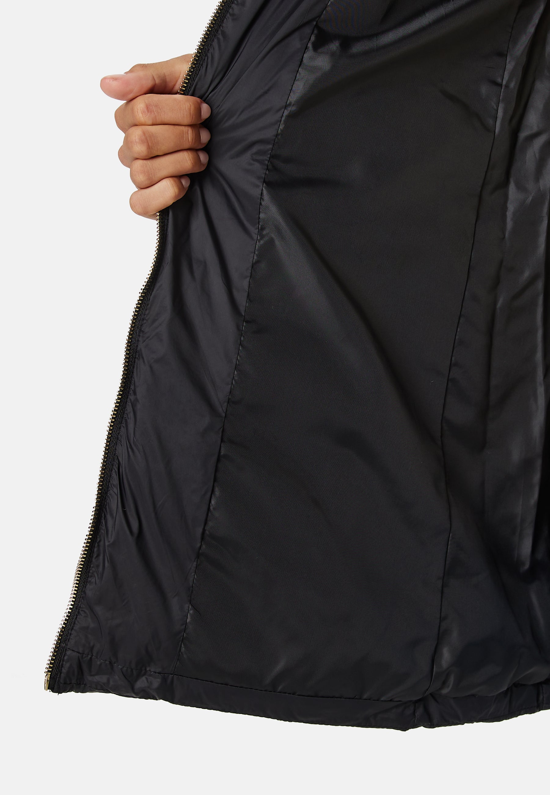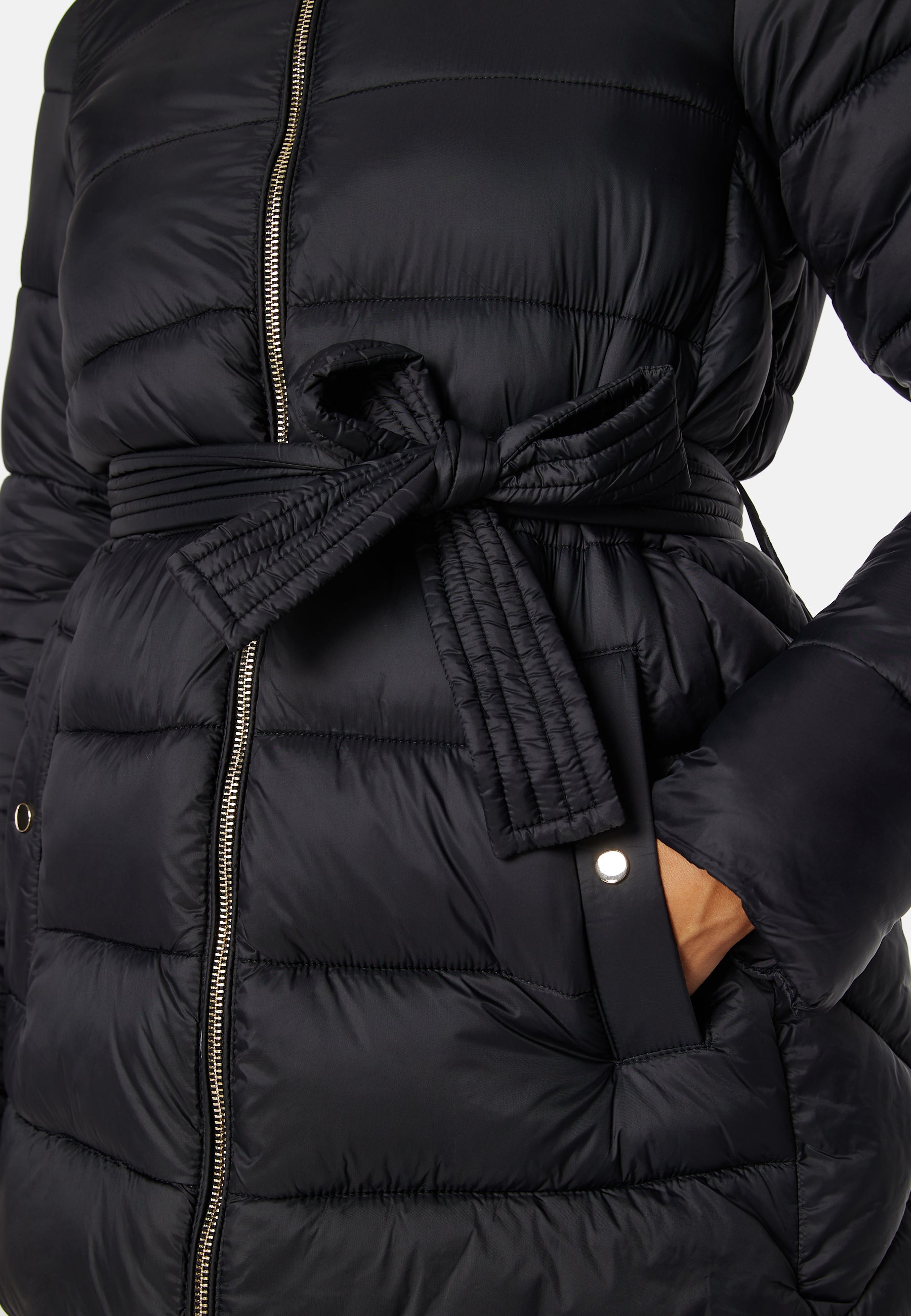 - Glidelås foran med knytbelte ved midjen