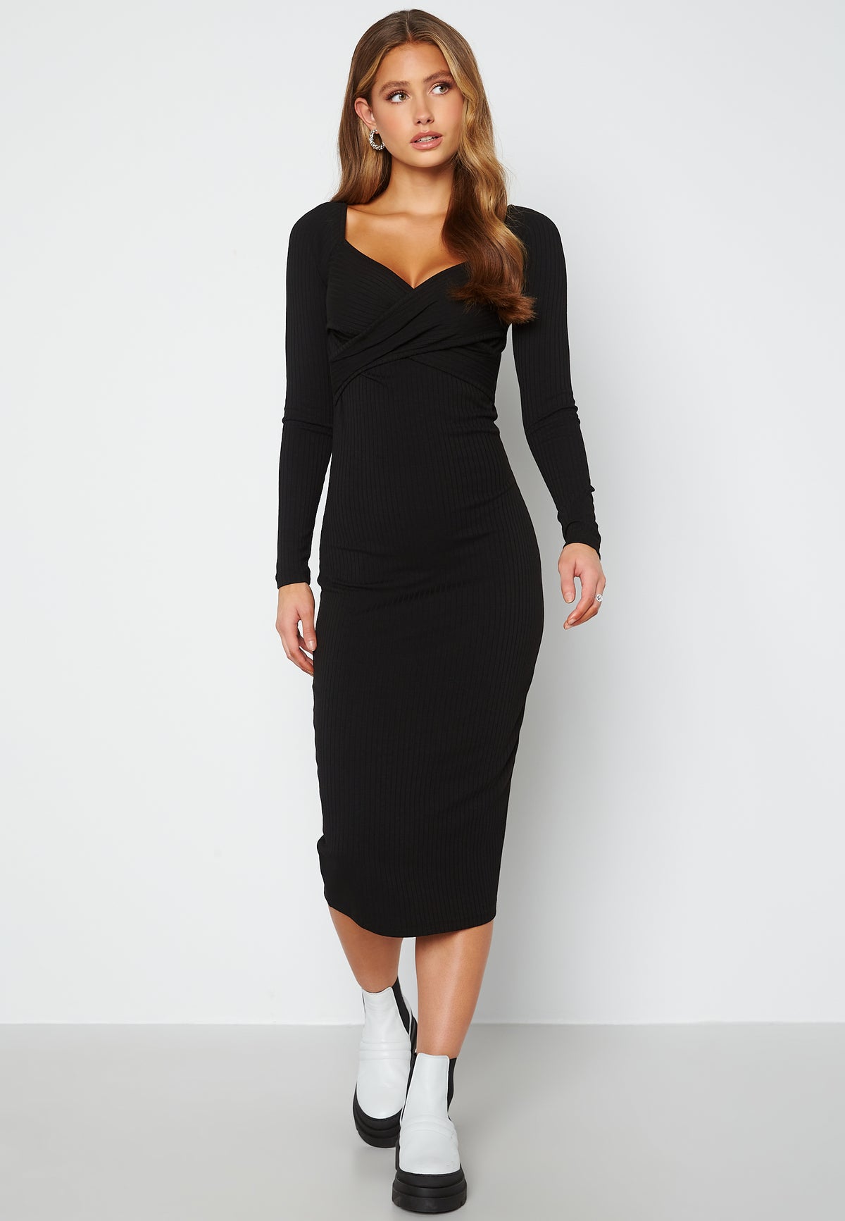 Ribbet midikjole i jersey.