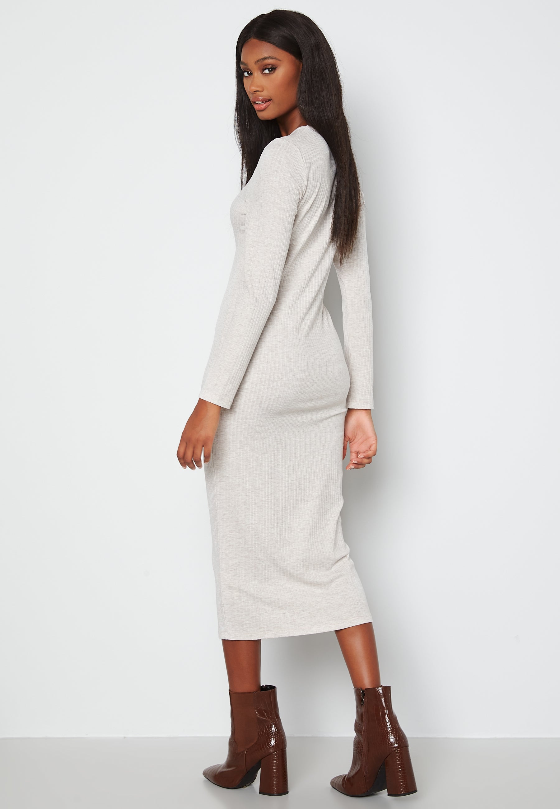 Ribbet midikjole i jersey.