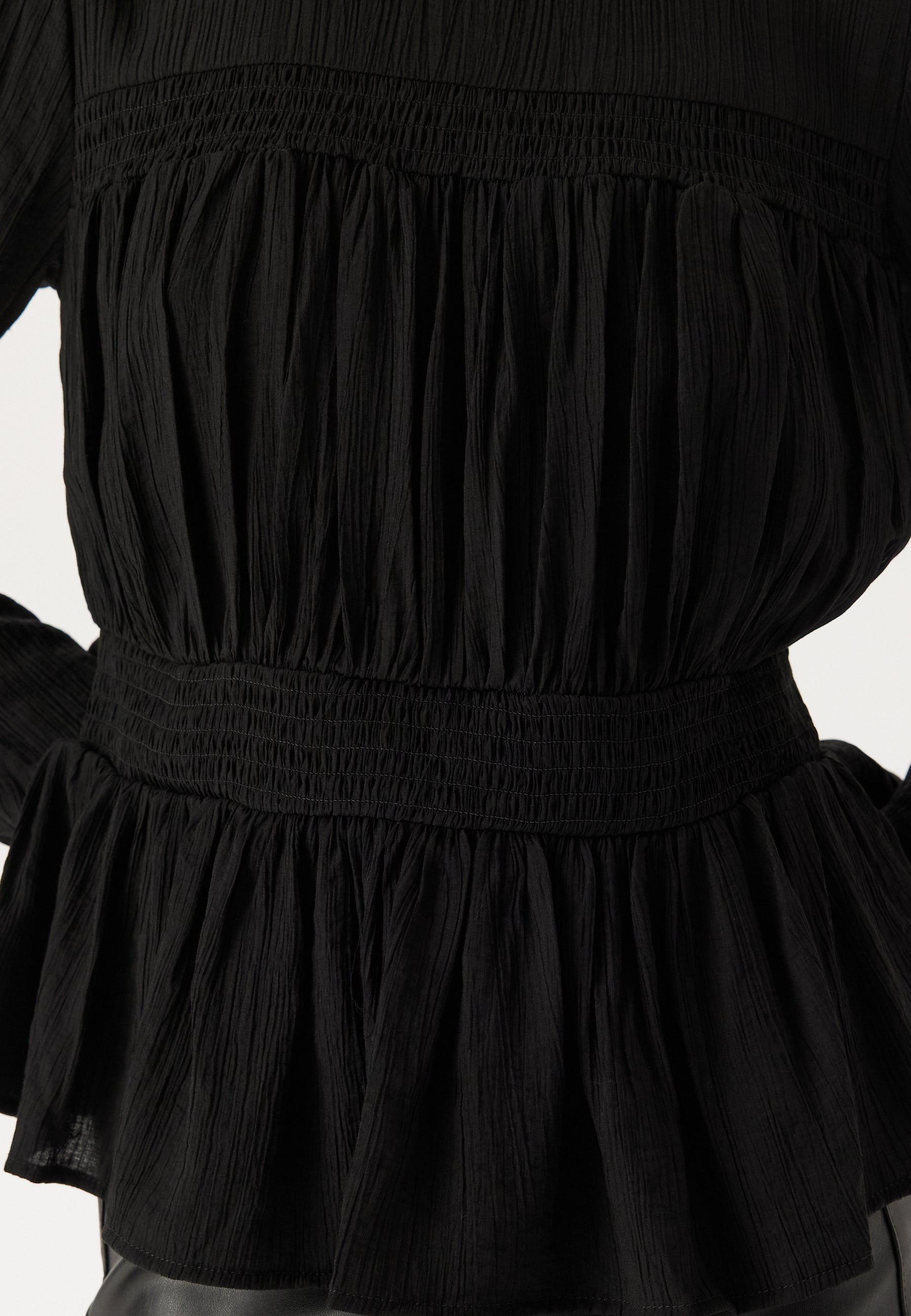 - Detaljer med strikk og en vaffelsøm.