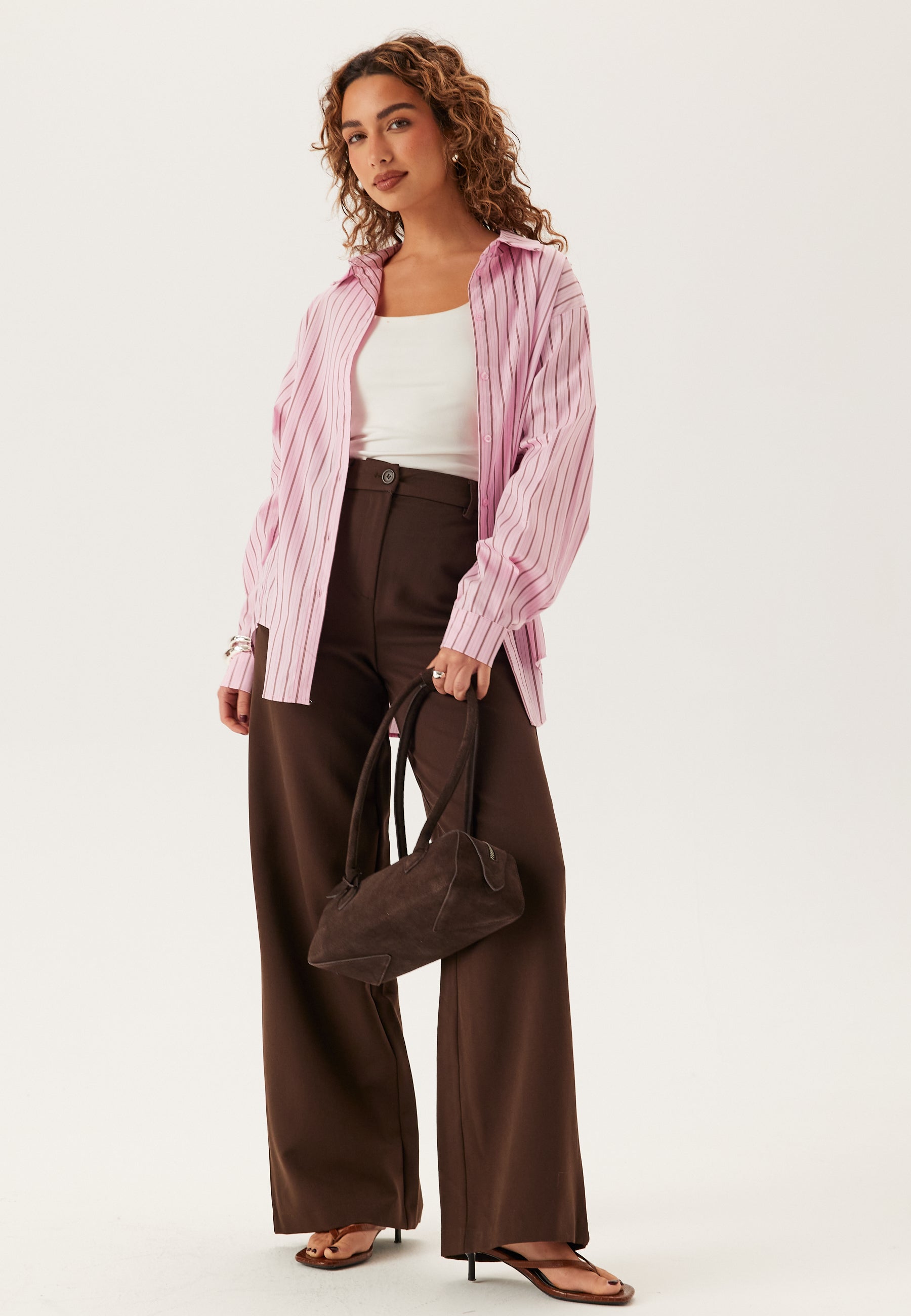 Dette er den typen stripete langermet skjorte som virkelig gjør jobben i garderoben din: pen nok til kontoret, enkel nok til hverdagsbruk, og litt mer spesiell takket være kombinasjonen av rosa og brune striper.