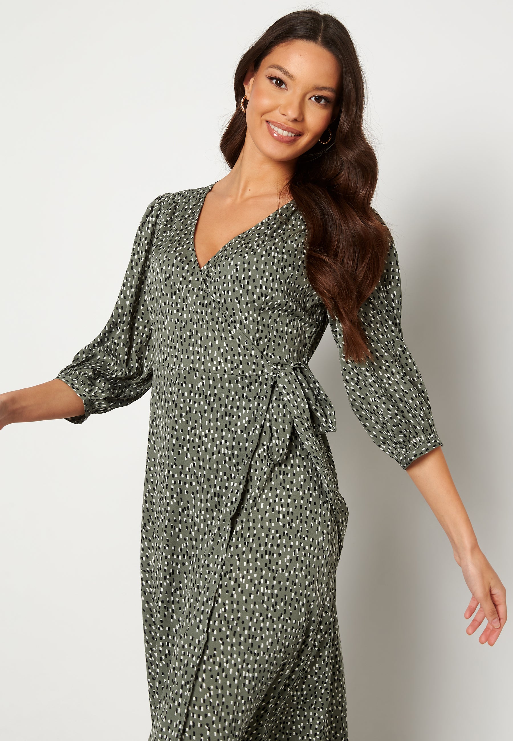 Pen midikjole fra ONLY med overlappdetalj.