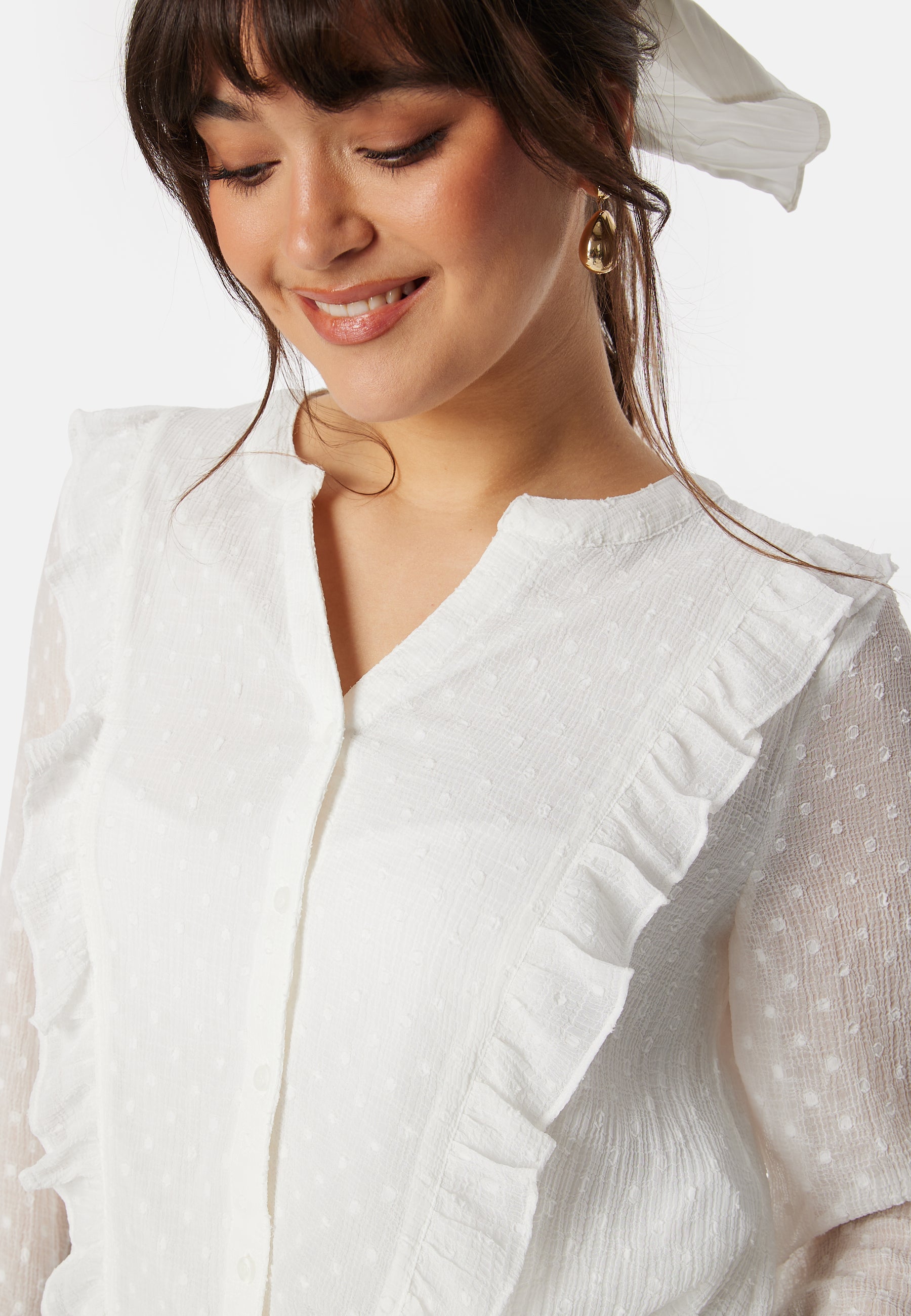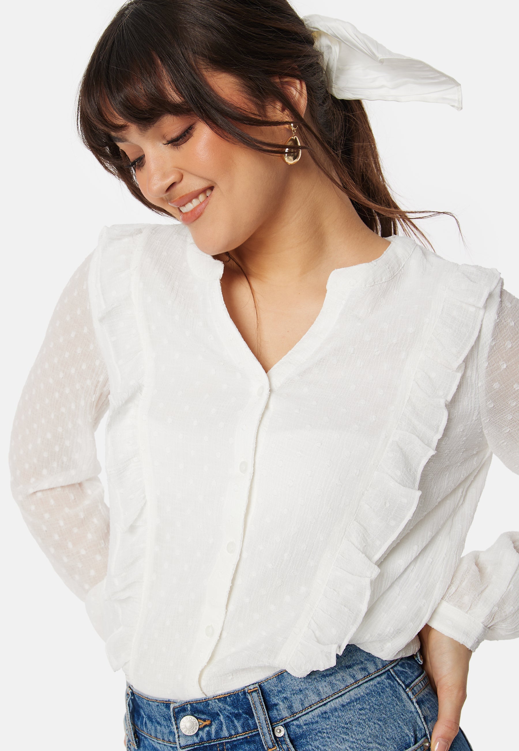 Bluse fra ONLY med volanger.