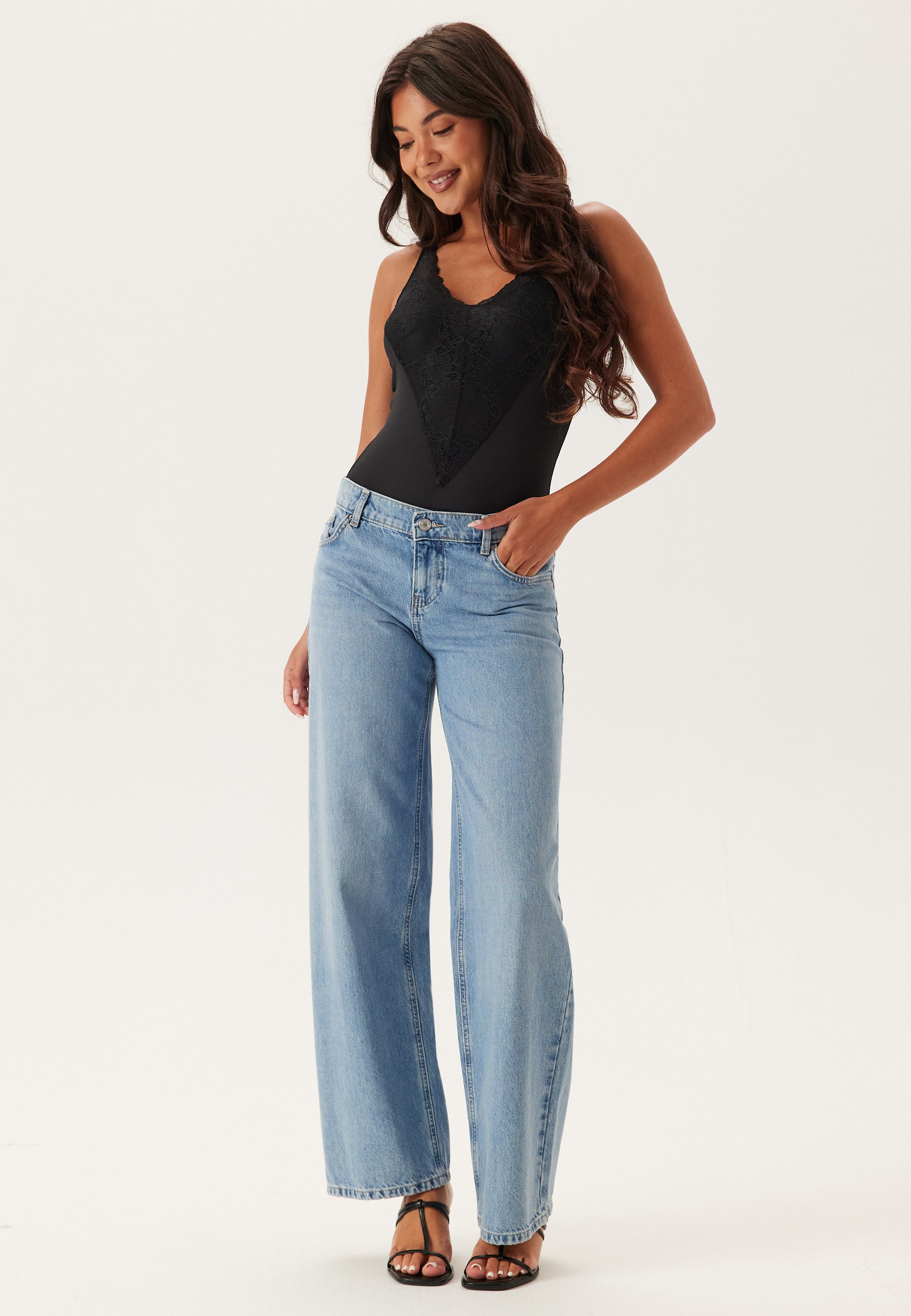 - V-halset hals med blondekant