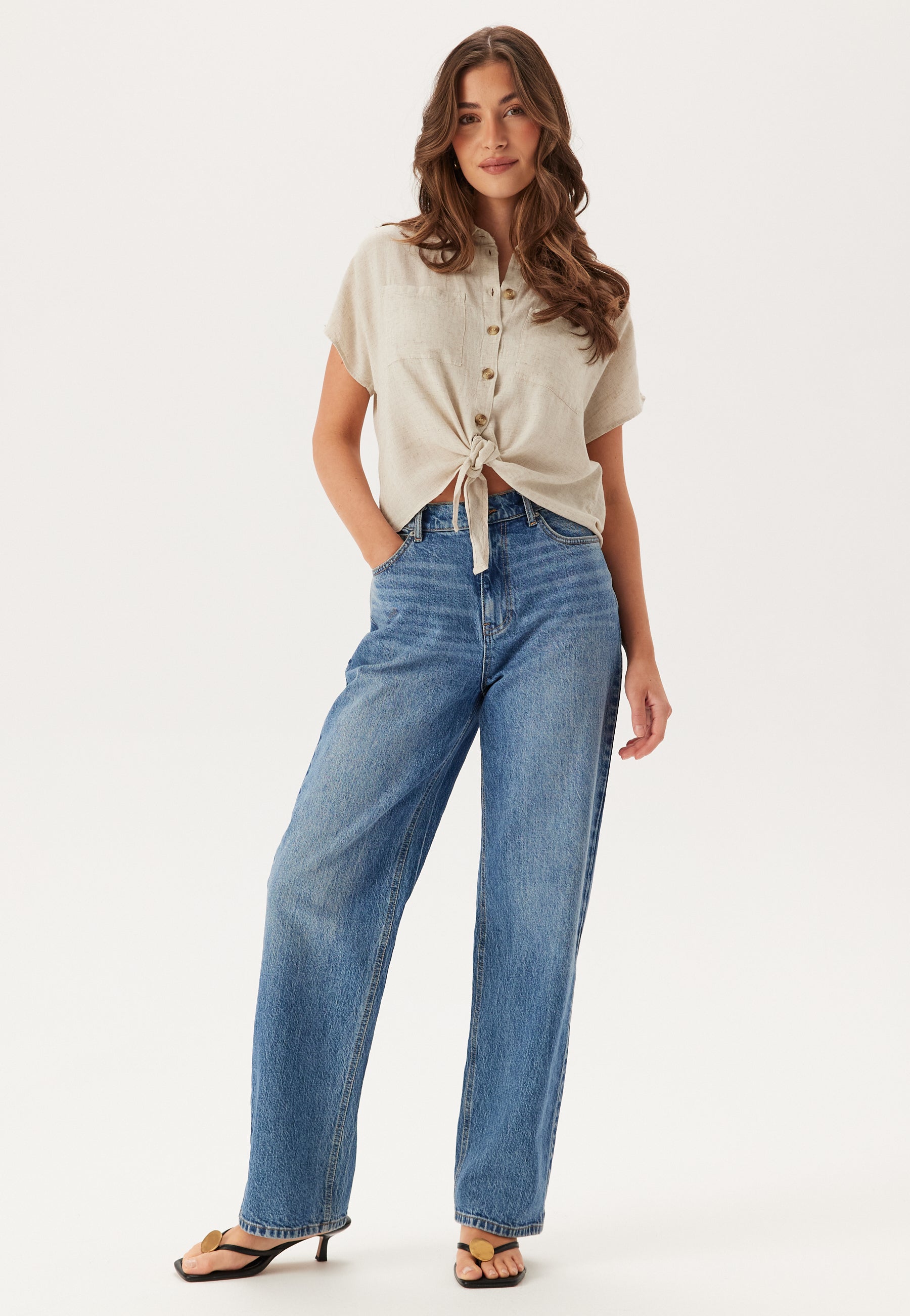 • Kortermet bluse fra Pieces.