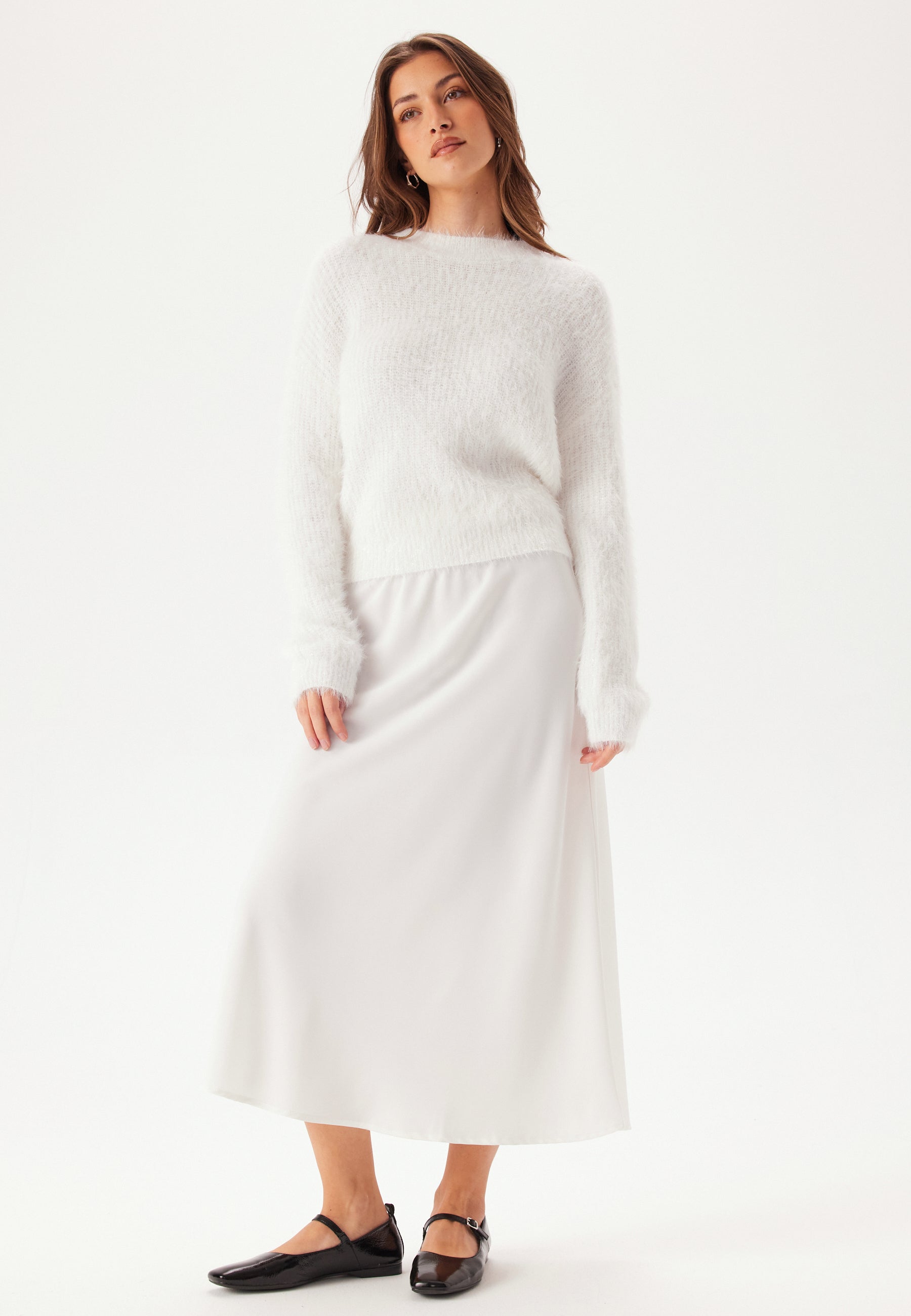 - Avslappet passform med utringet skulder.