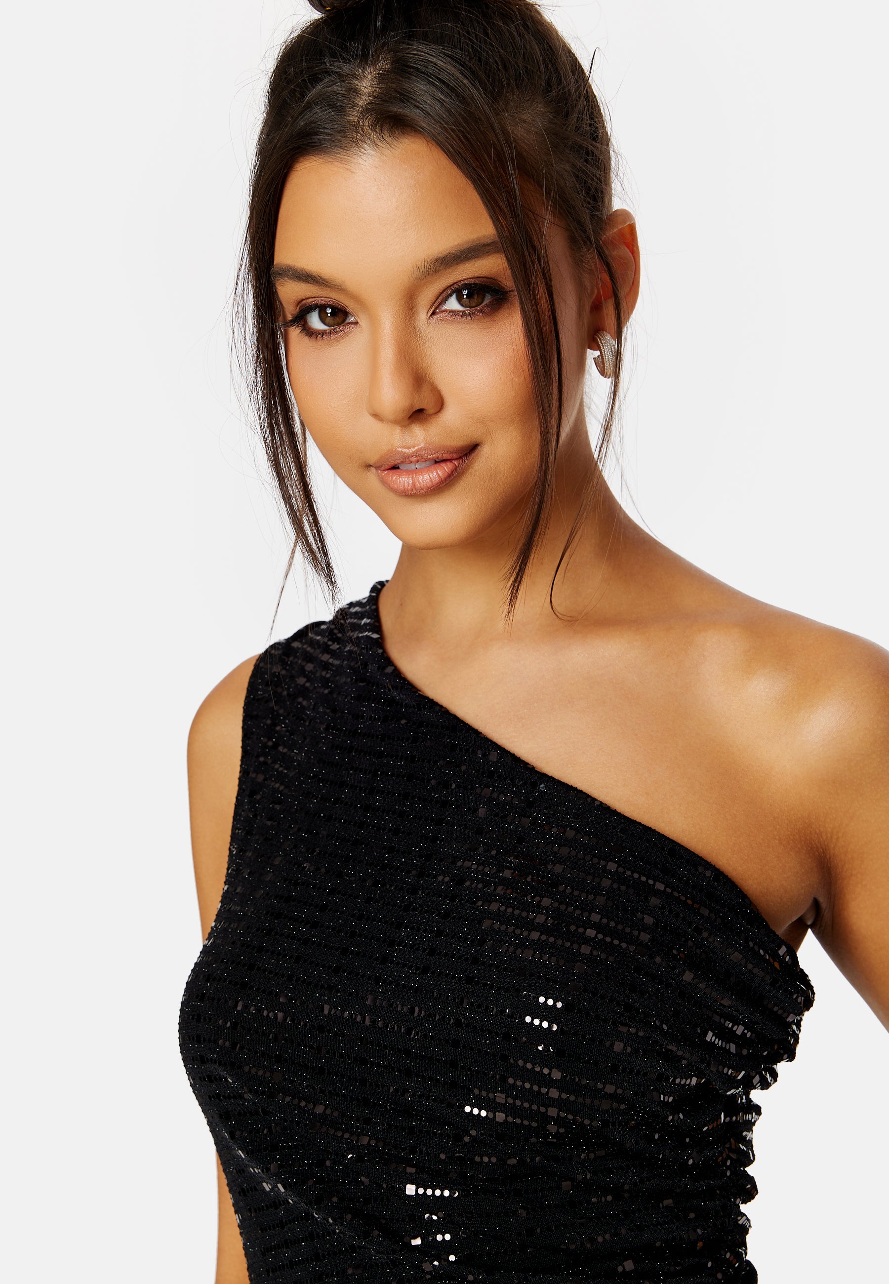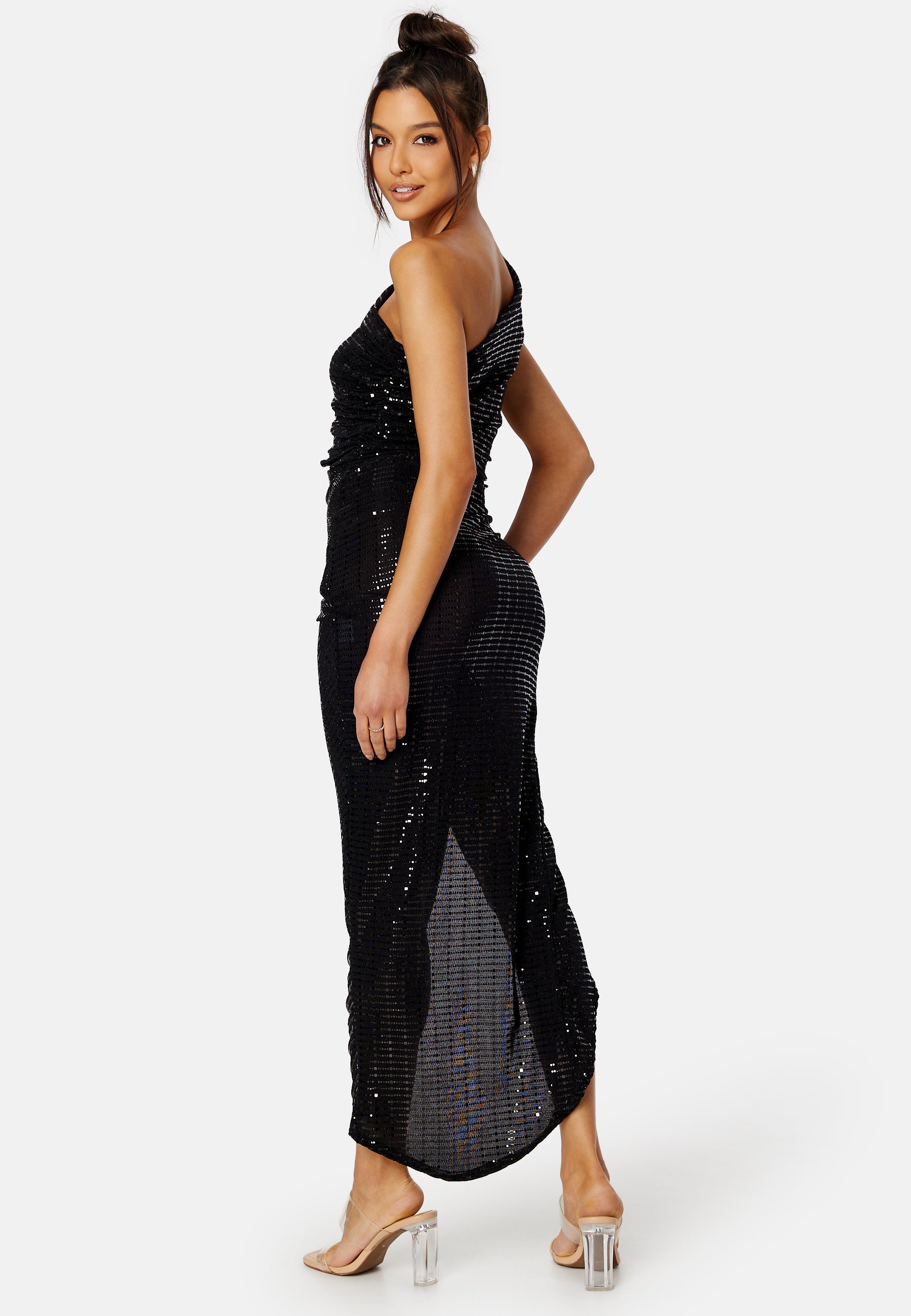 Paljettert kjole viser en skulder fra John Zack perfekt til festlighetene.