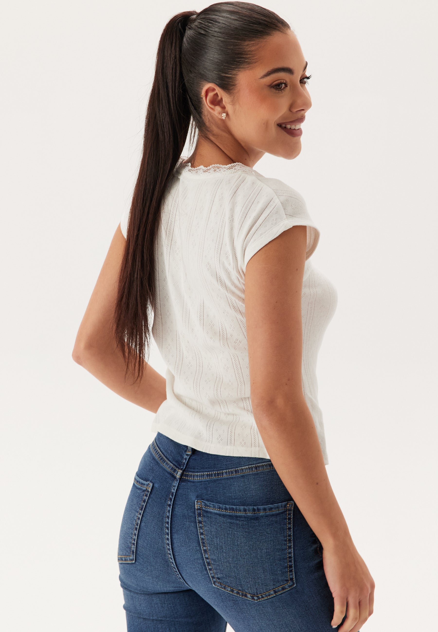 - Firkantet hals. blonder.