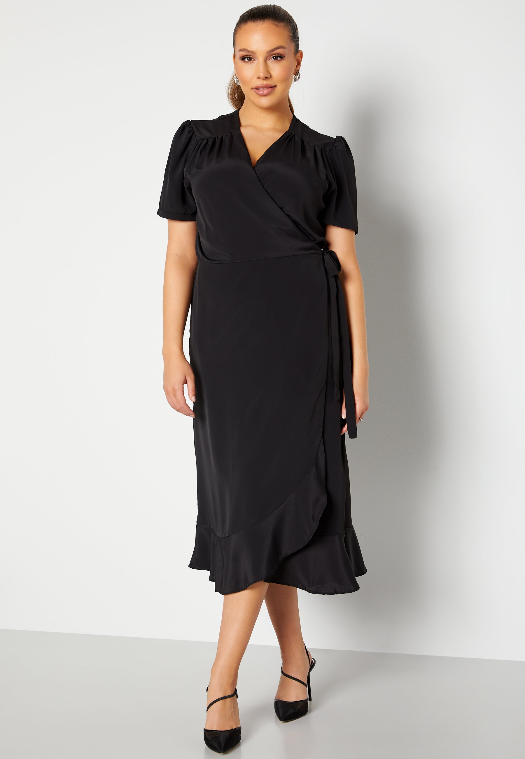 Short Sleeve Wrap Frill Curve Dress
