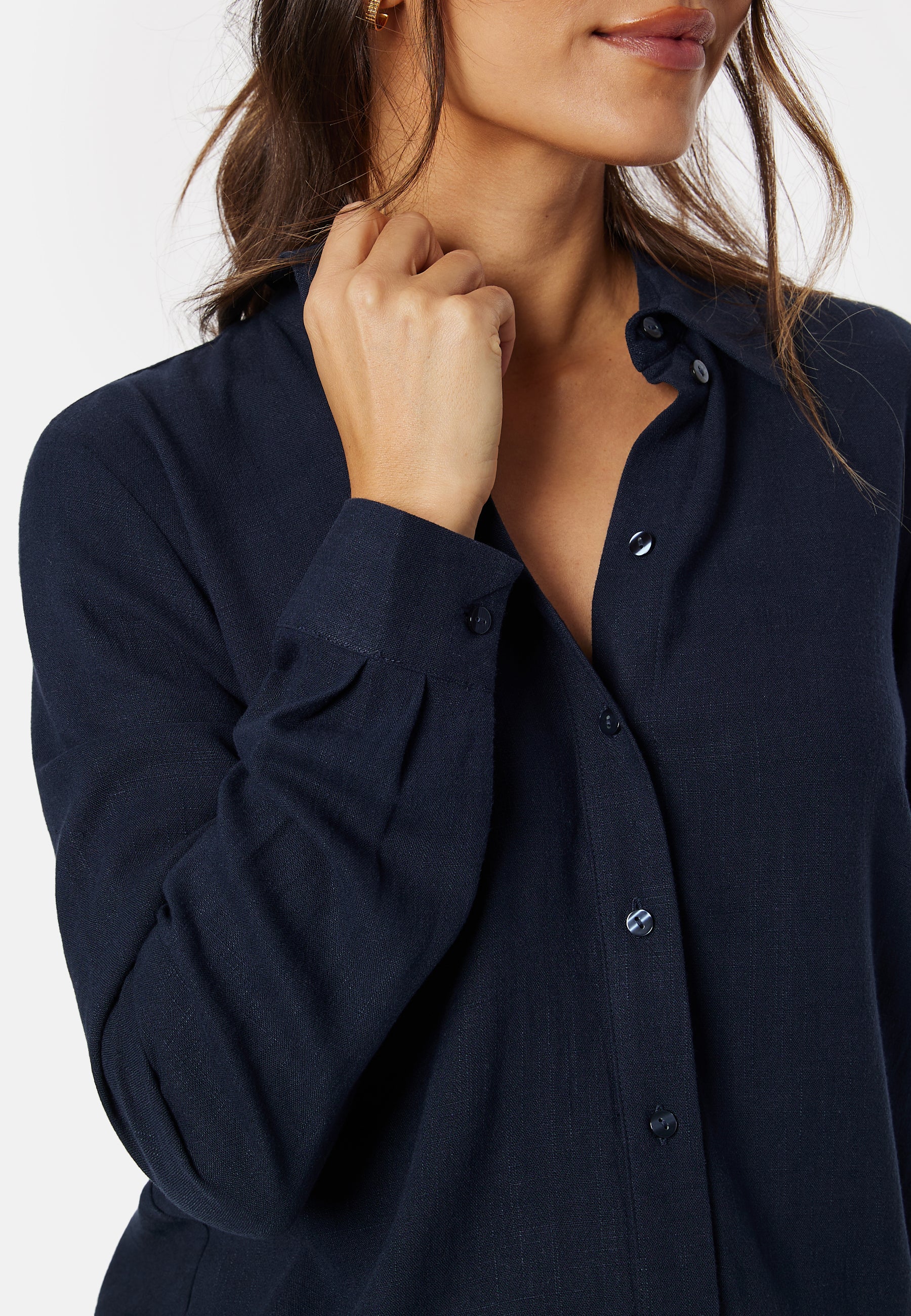 - Langt erme med mansjett og knapp.