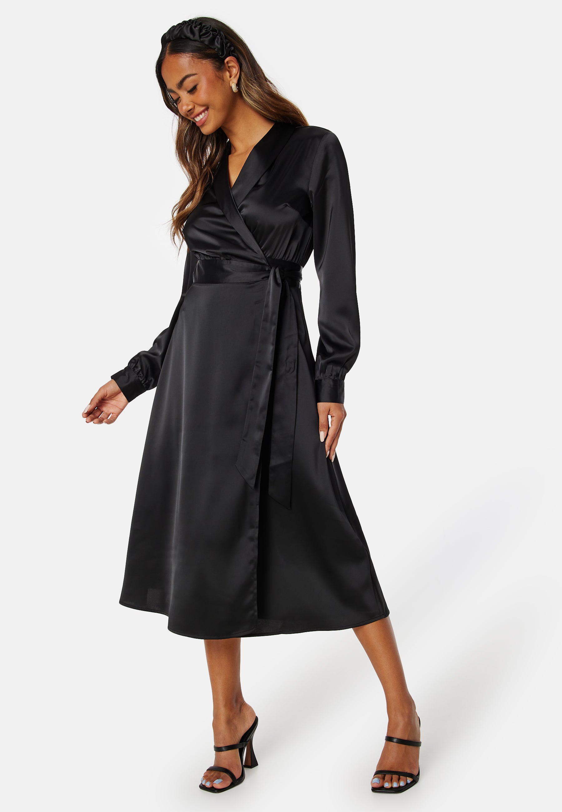 Elegant omslagskjole i sateng fra BUBBLEROOM.
