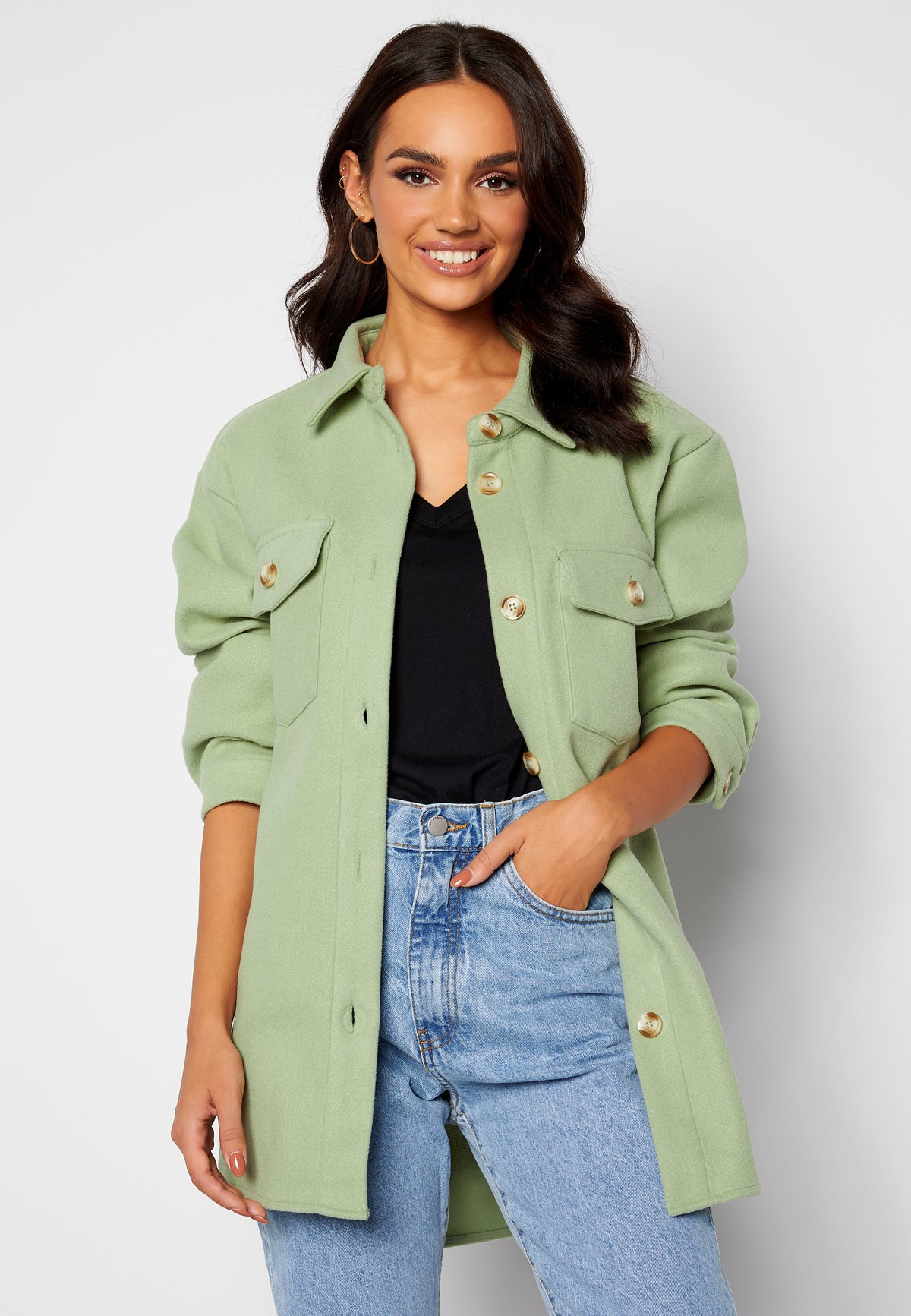 Fin, trendy skjortejakke.